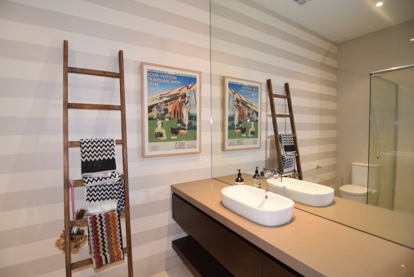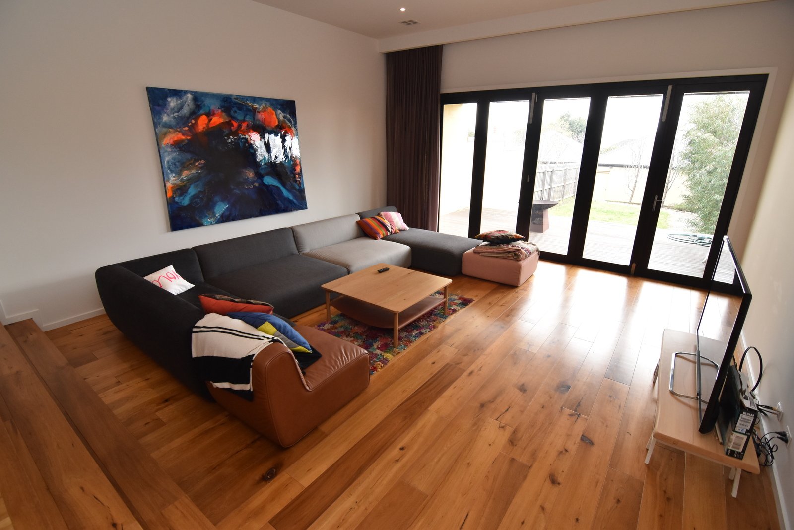 The large open plan living zone captures the North sun and opens onto a large entertaining deck via bi-fold doors bringing the outdoors in, fantastic for entertaining or keeping an eye on the children. Downstairs, you'll find a spacious second living area that could easily be transformed into a bedroom with built-in wardrobes. This level also features a generously sized third bathroom and a separate laundry, all contributing to a thoughtfully designed floor plan. The second level boasts three generously sized bedrooms. The master suite features a designer ensuite and an expansive walk-in robe with custom cabinetry. The two additional bedrooms are serviced by a luxurious bathroom, complete with a sleek freestanding bathtub, a spacious shower, floor-to-ceiling Italian tiles, and a Caesarstone vanity. A third living area, positioned between the bedrooms, offers versatility as a study or home office.
