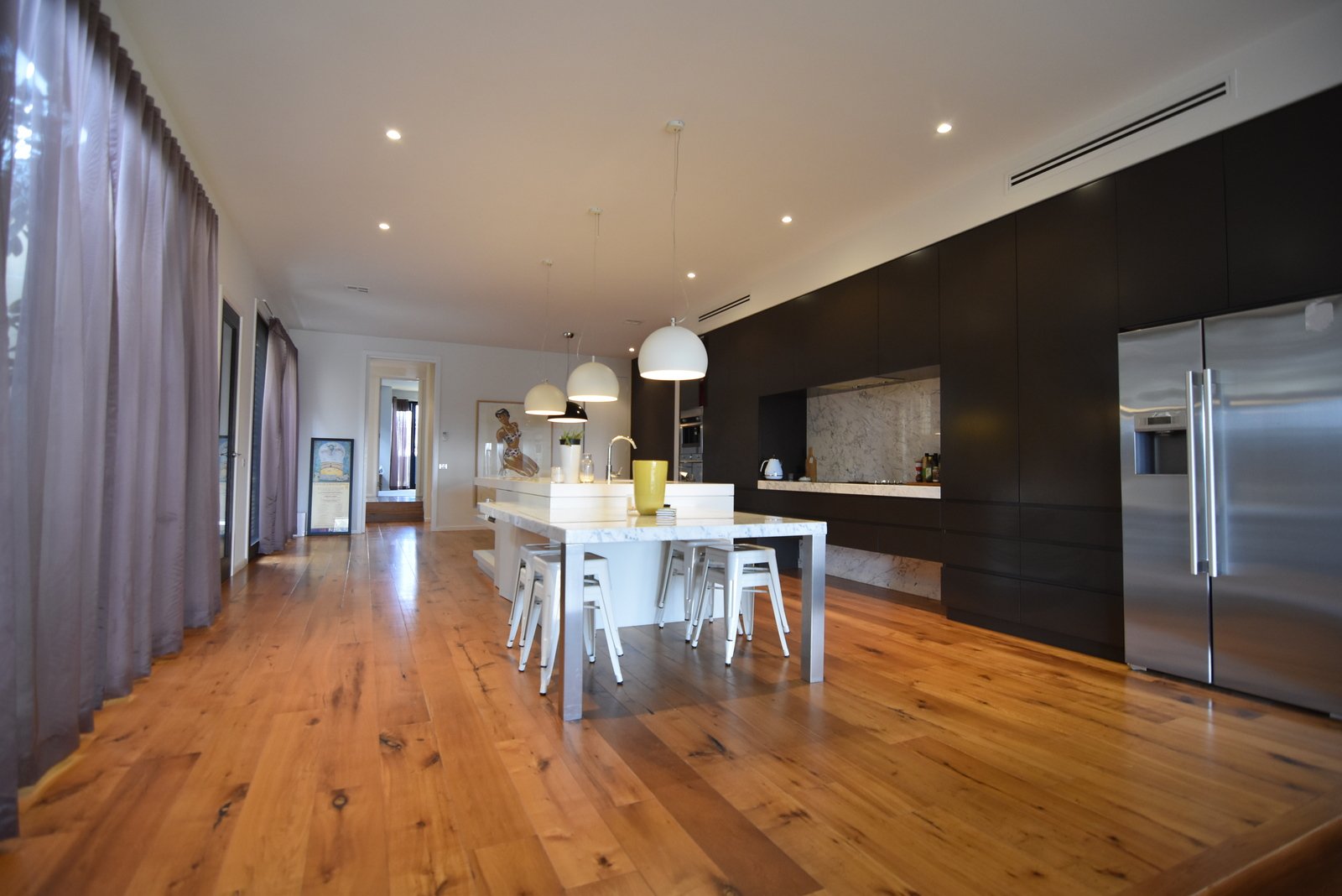 On entry there is an immediate appreciation for the tall ceilings and natural light that floods the open space and reflects the stunning European oak flooring and internal limestone. The large open plan dining and designer kitchen is an entertainer's dream boasting a combination of Ceaserstone, Statuario marble, Smeg appliances including built in espresso machine, extensive cabinetries and a walk in wine cellar.