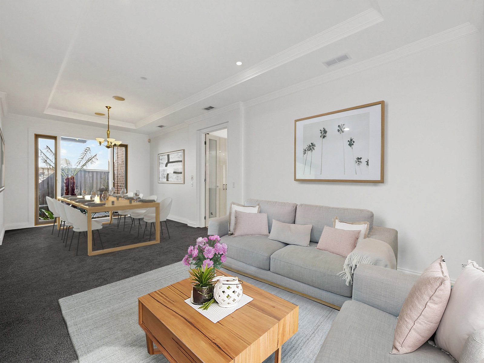 Boasting 3 bedrooms plus a home office or 4th bedroom, this stylish home includes multiple living zones, a formal lounge/dining area, and a light-filled open-plan kitchen/living that opens to a private, low-maintenance garden with covered entertaining.