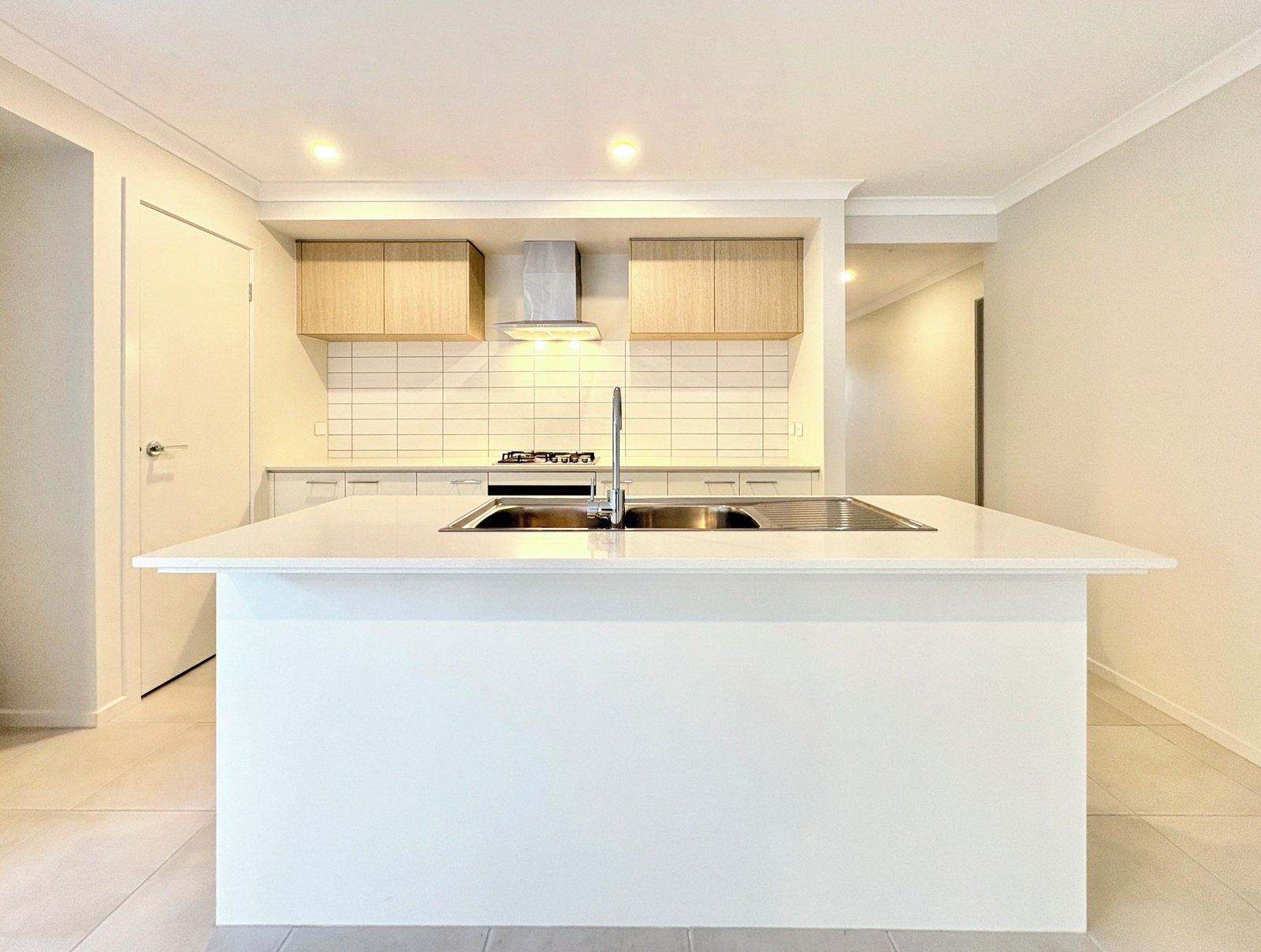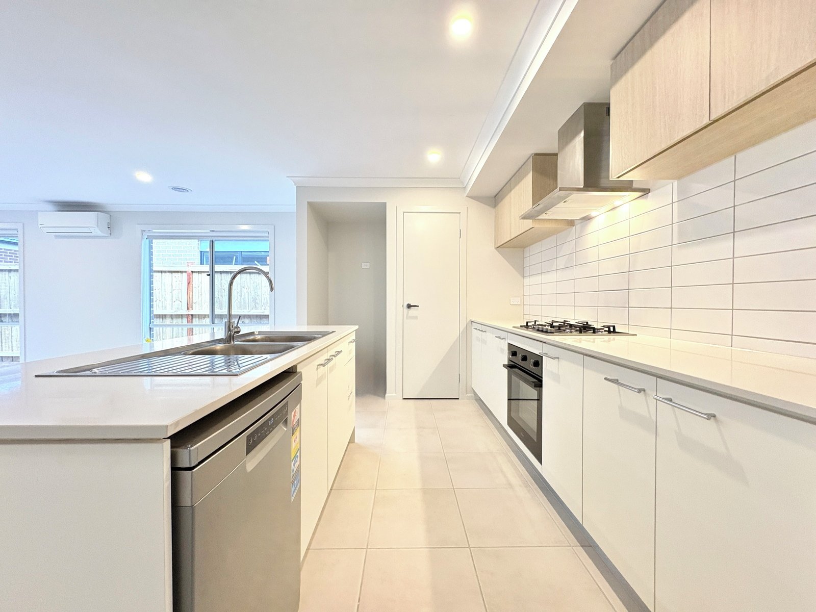 - Kitchen with stone benches, gas cooktop, electric oven, pantry and dishwasher