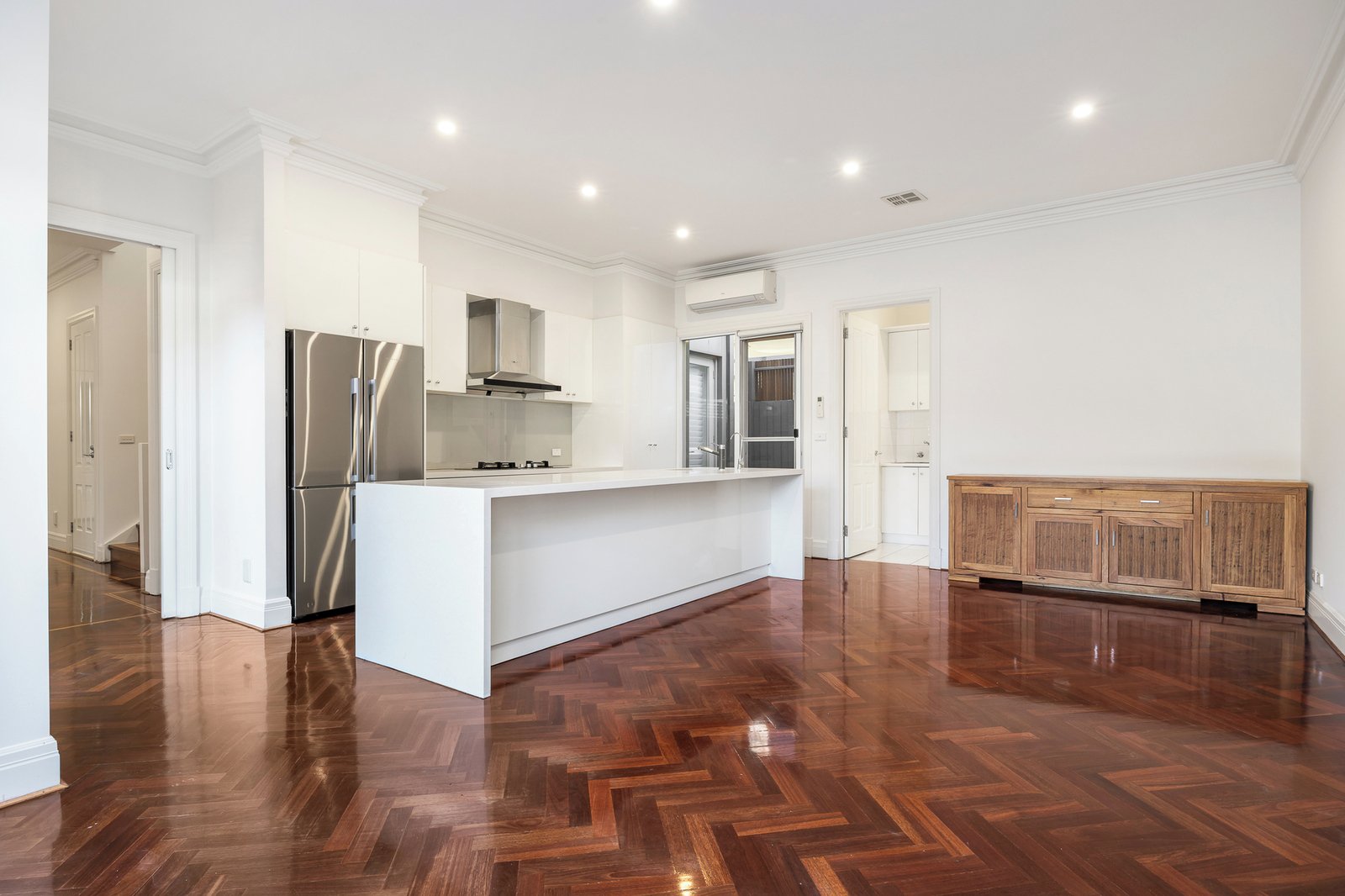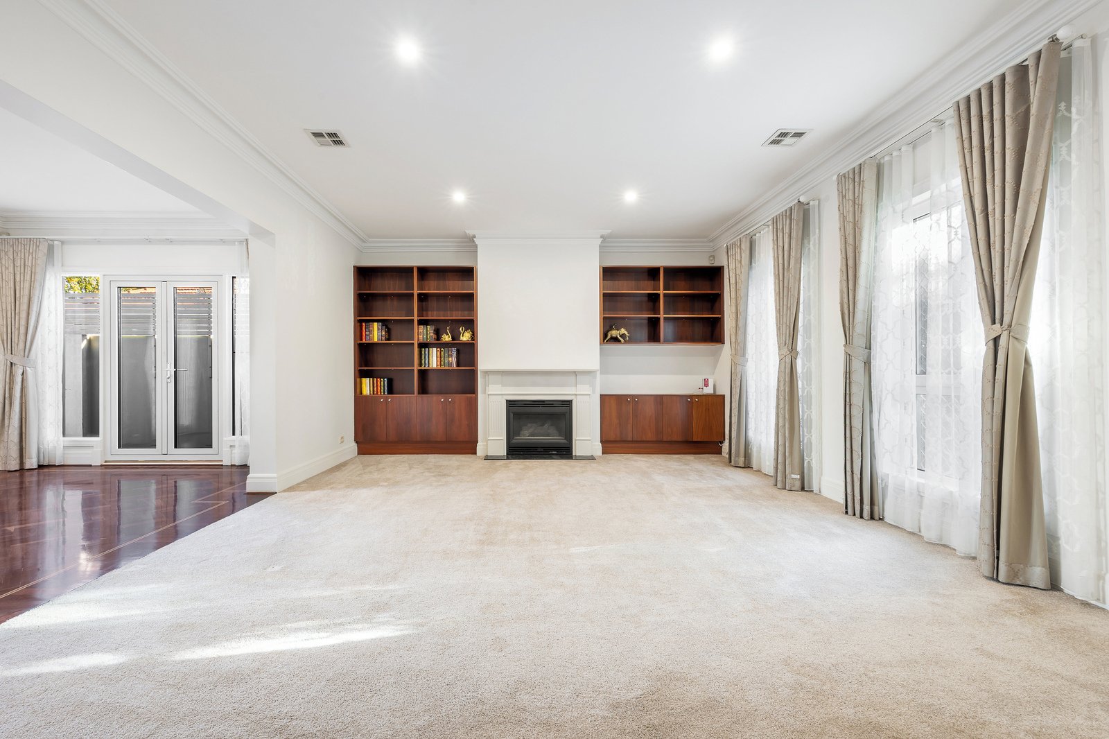 The formal lounge, with built-in cabinetry, and light filled dining room radiate a feeling of warmth and inclusion before opening up to a spacious and relaxed...