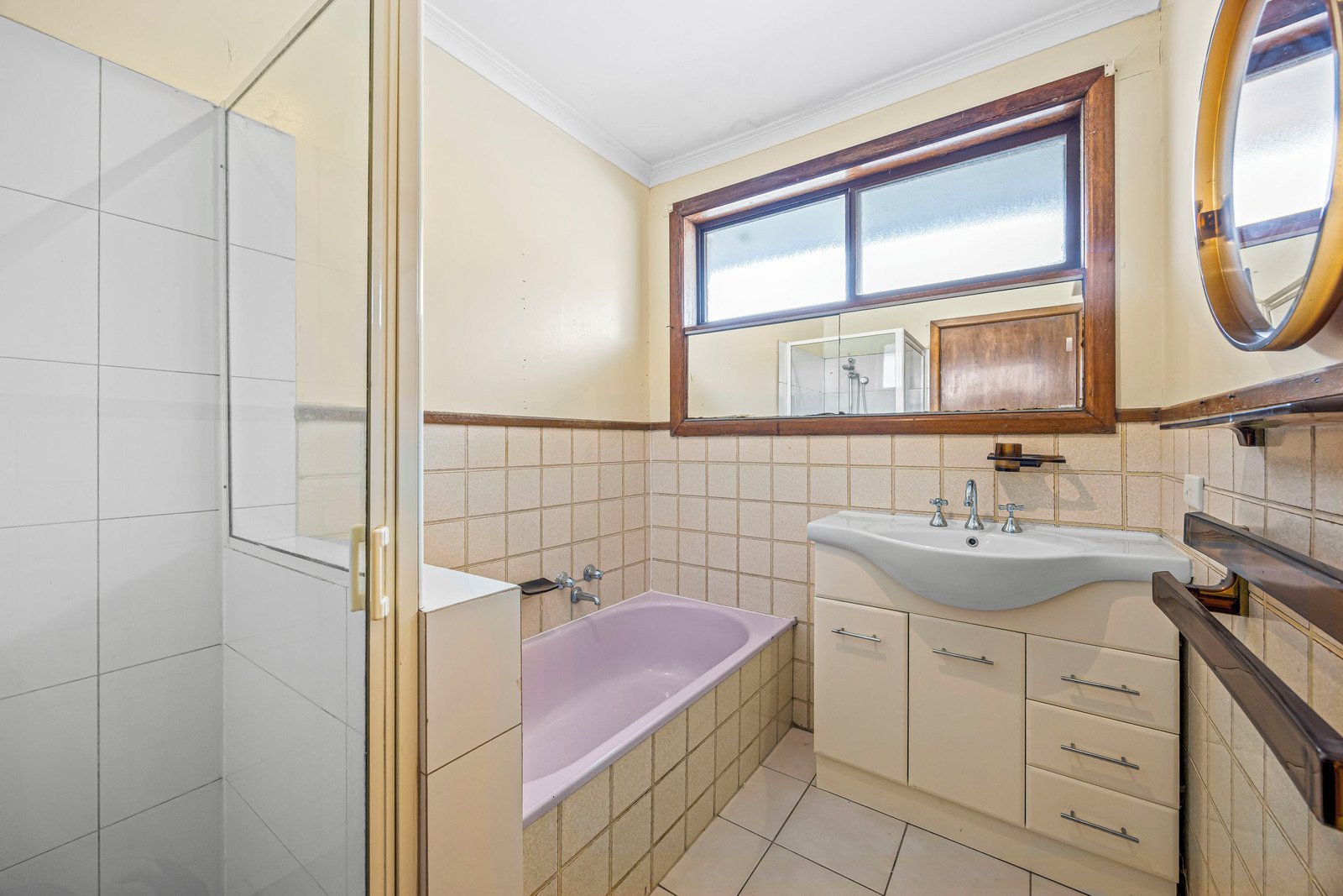 - Bathroom with shower and separate bath