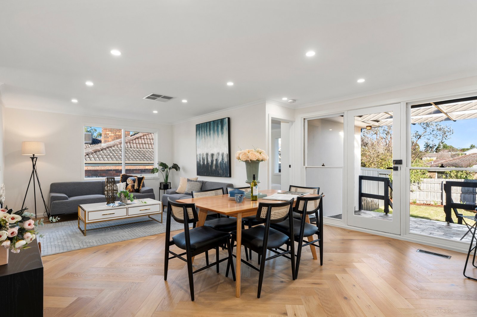 • Open-plan living and dining area filled with natural light