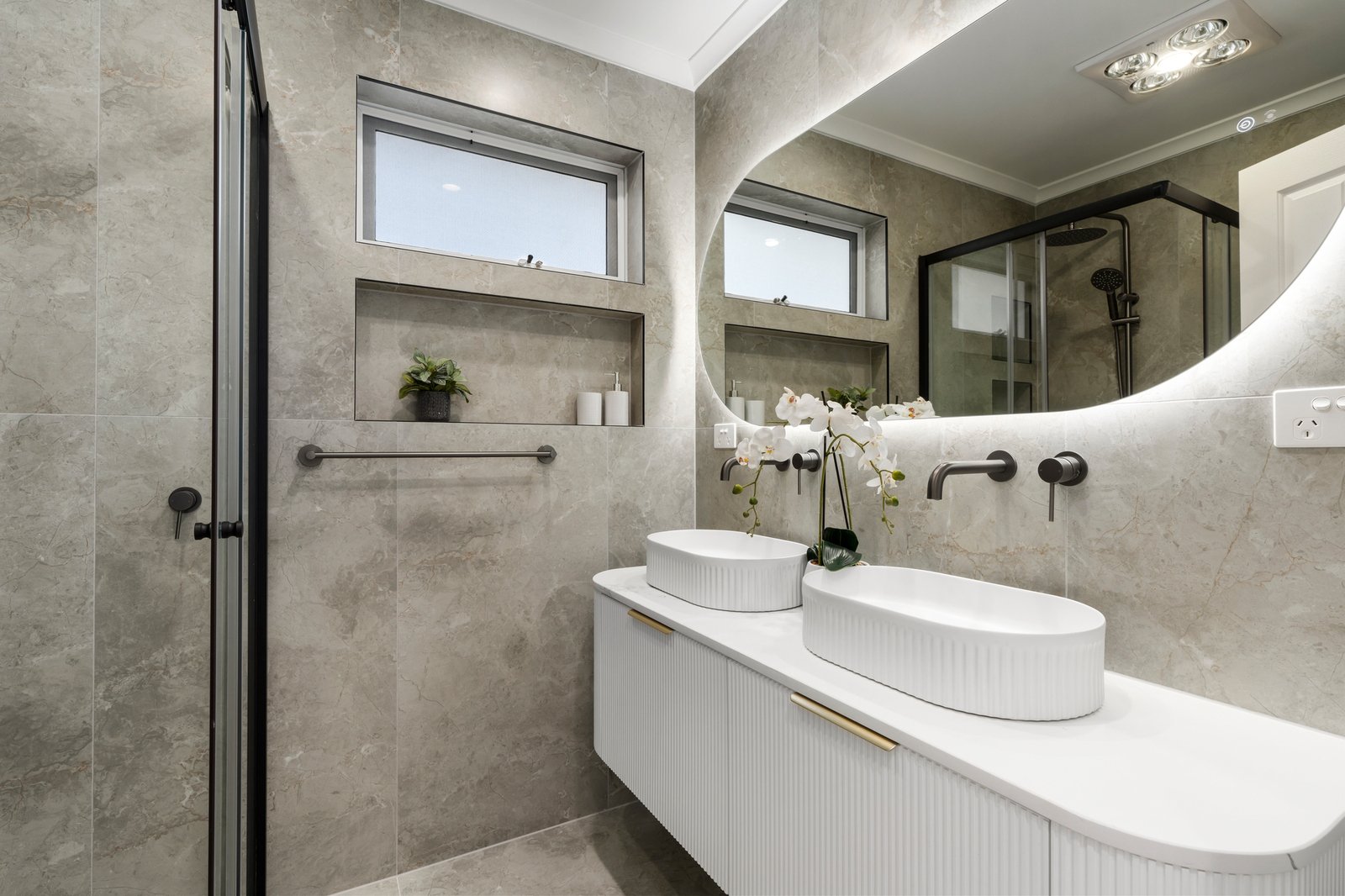 • Two fully renovated bathrooms with rainfall showers, LED mirrors & fluted vanities