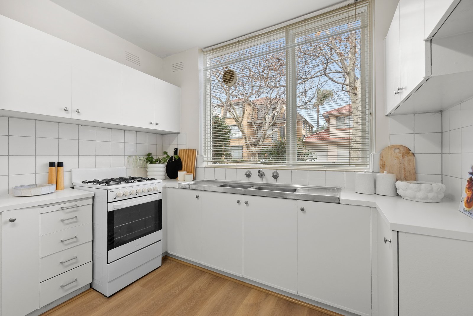 Showcasing a spacious floor plan and an abundance of natural light, the interior exudes warmth and comfort. Brand new floating floors flow seamlessly through the living spaces while brand new carpet in the bedrooms enhances coziness. Leafy views from every angle create a tranquil atmosphere. The chic and practical kitchen features gas cooking, generous storage, tiled splashbacks and ample bench space are sure to please, as will the inclusion of a single off-street car space for convenience