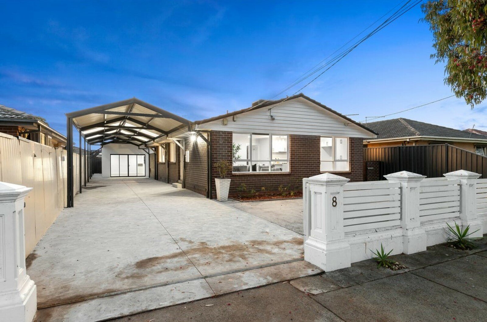 • Solid-rendered front fence with an electric gate for added privacy