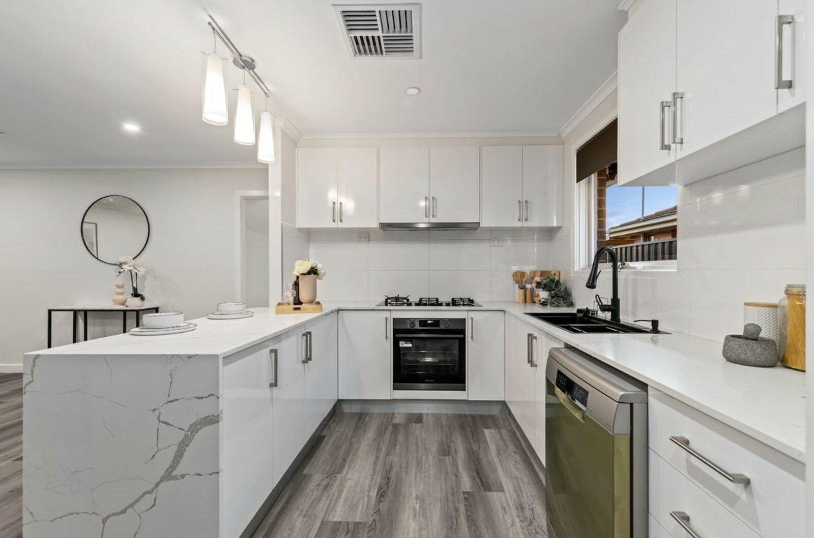 • Well-appointed kitchen with gas cooktop, electric oven, stone benchtops, and dishwasher