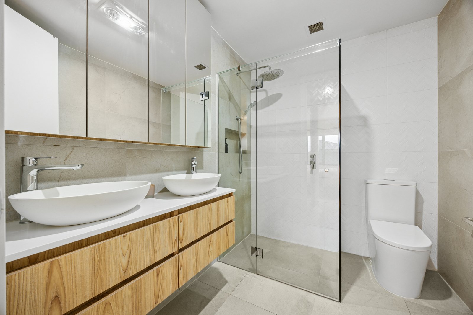Upstairs, a versatile landing space can be a study zone or extra sitting room as required, while both of the bedrooms feature fitted wardrobes, the main boasting a luxurious fully-tiled ensuite with twin vanity and masses of storage. These attributes feature in the second bathroom, and the home also comes with the bonus of a guest powder room off the large laundry, while split system heating/cooling throughout, a garden shed & water tank plus an auto garage with secure internal entry conclude an effortlessly sophisticated package.