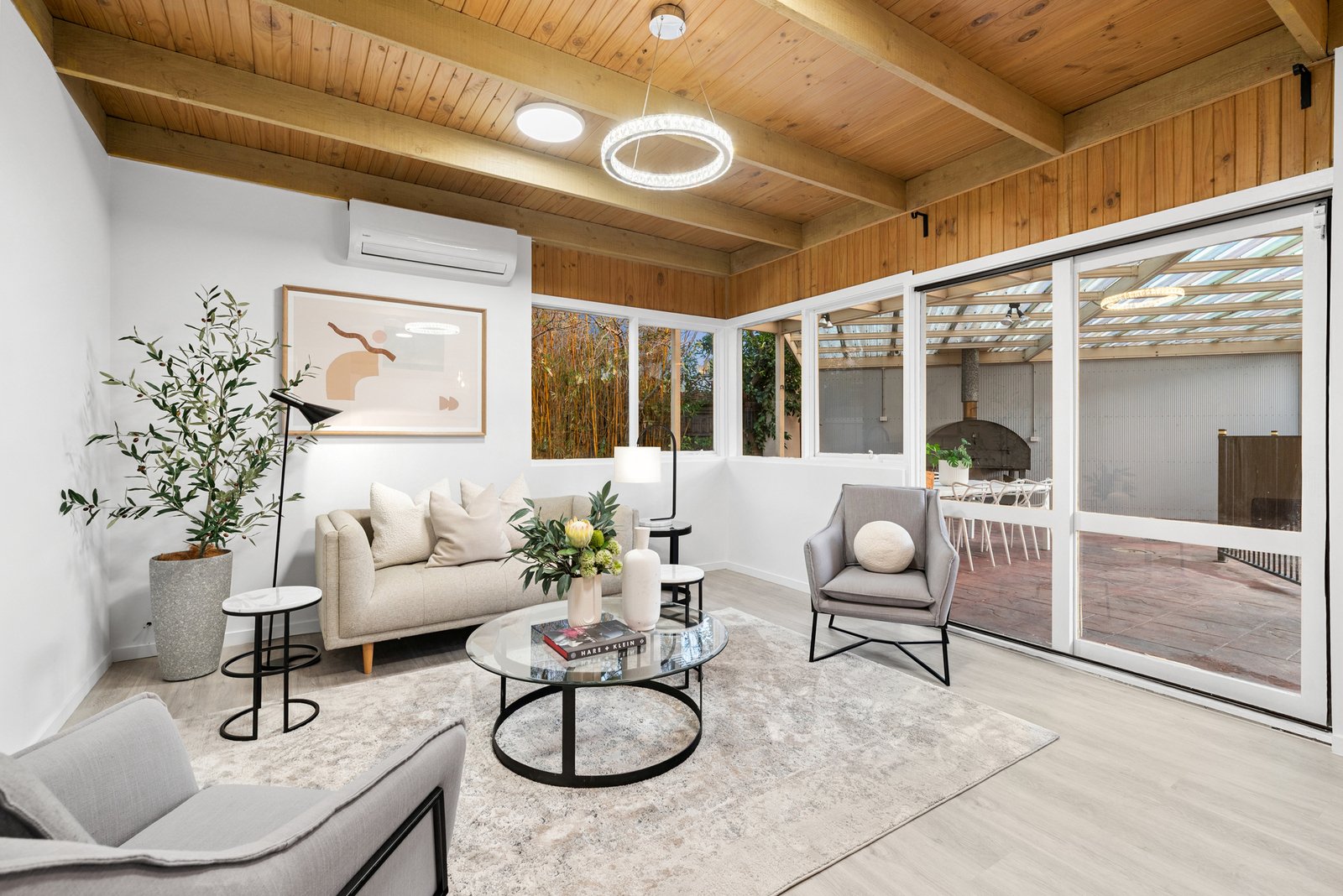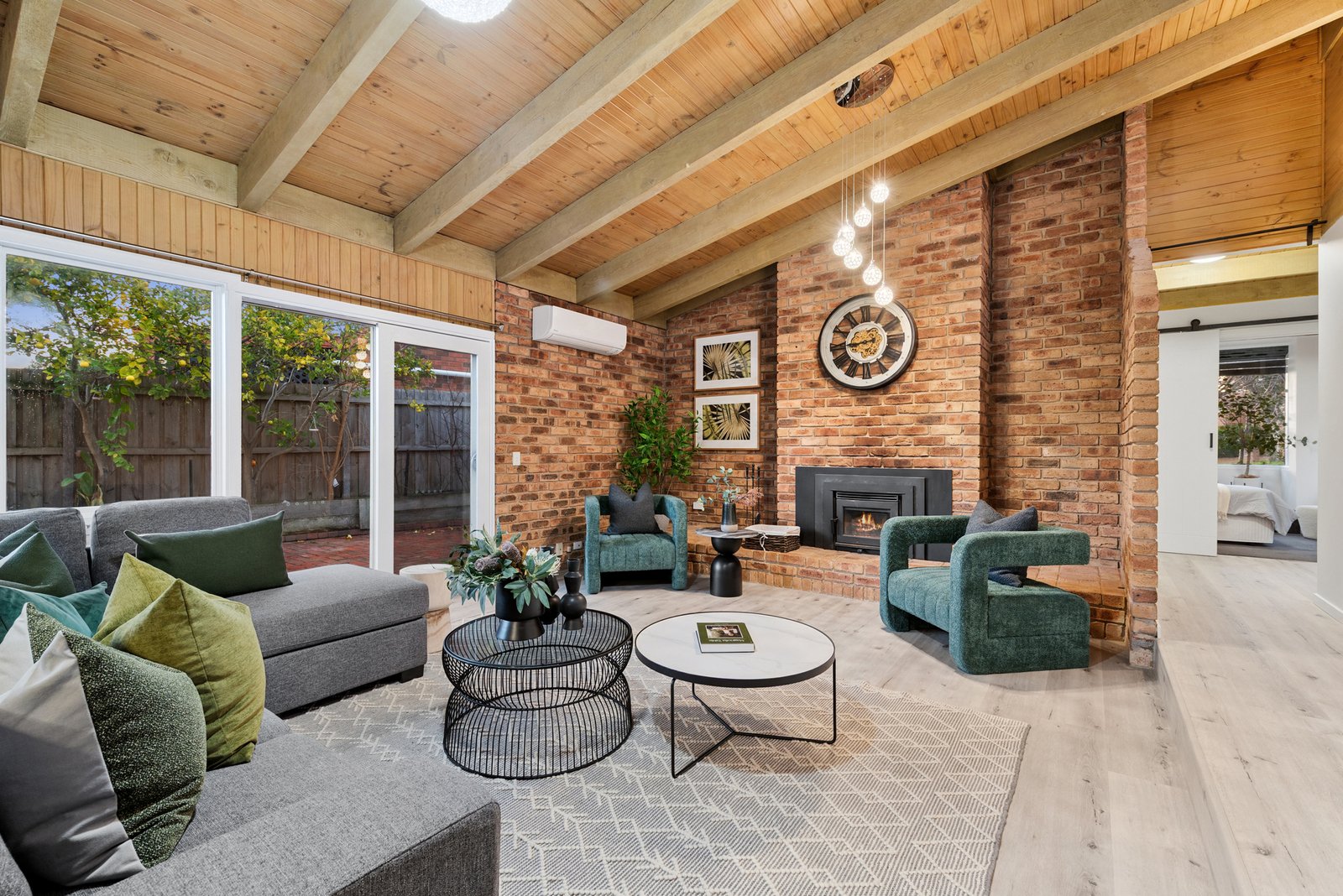 Boasting a cul-de-sac locale, nearby park and pool for the summer, this stylishly renovated home is the perfect setting to create treasured family memories. Tucked at the very end of its court, the seriously cool split-level layout offers light-splashed interiors that are alive with character thanks to stretches of glass, warm timber panelling and rich exposed brick.