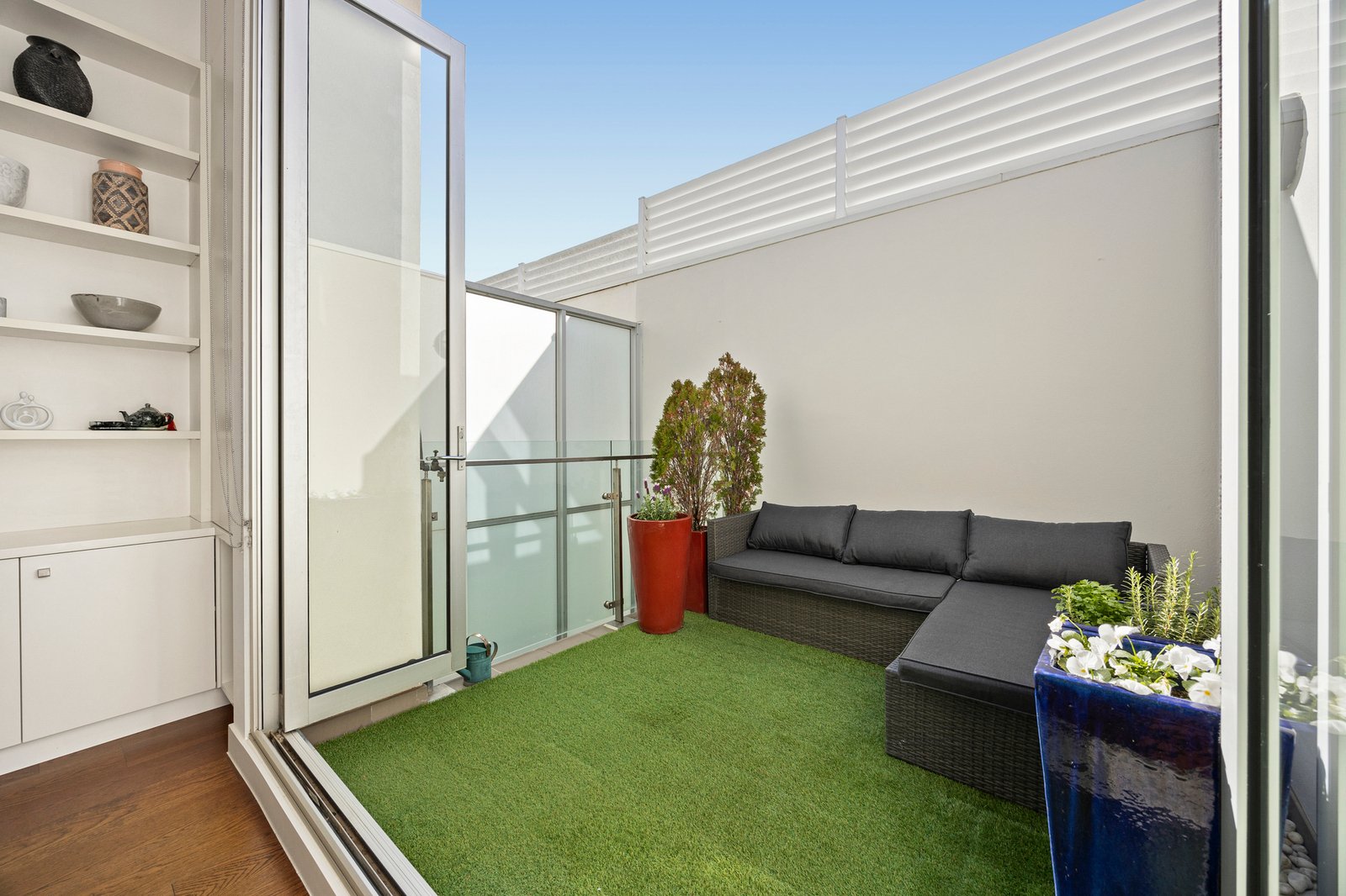 Lock, leave & love the beachside life in this 5-star, 4-level, double-garage townhouse. Quietly cocooned in the heart of the group and securely accessed via a lush garden-terrace reminiscent of a luxury resort, this three-bedroom, two-bathroom home rises over three light-filled levels. Stepping in on the ground floor with a dedicated bedroom level, the home rises to mid-level living with wide bi-folds to an entertainers’ balcony while, above, a bay-horizon roof-deck catches a view around Hobsons’ Bay to Williamstown!