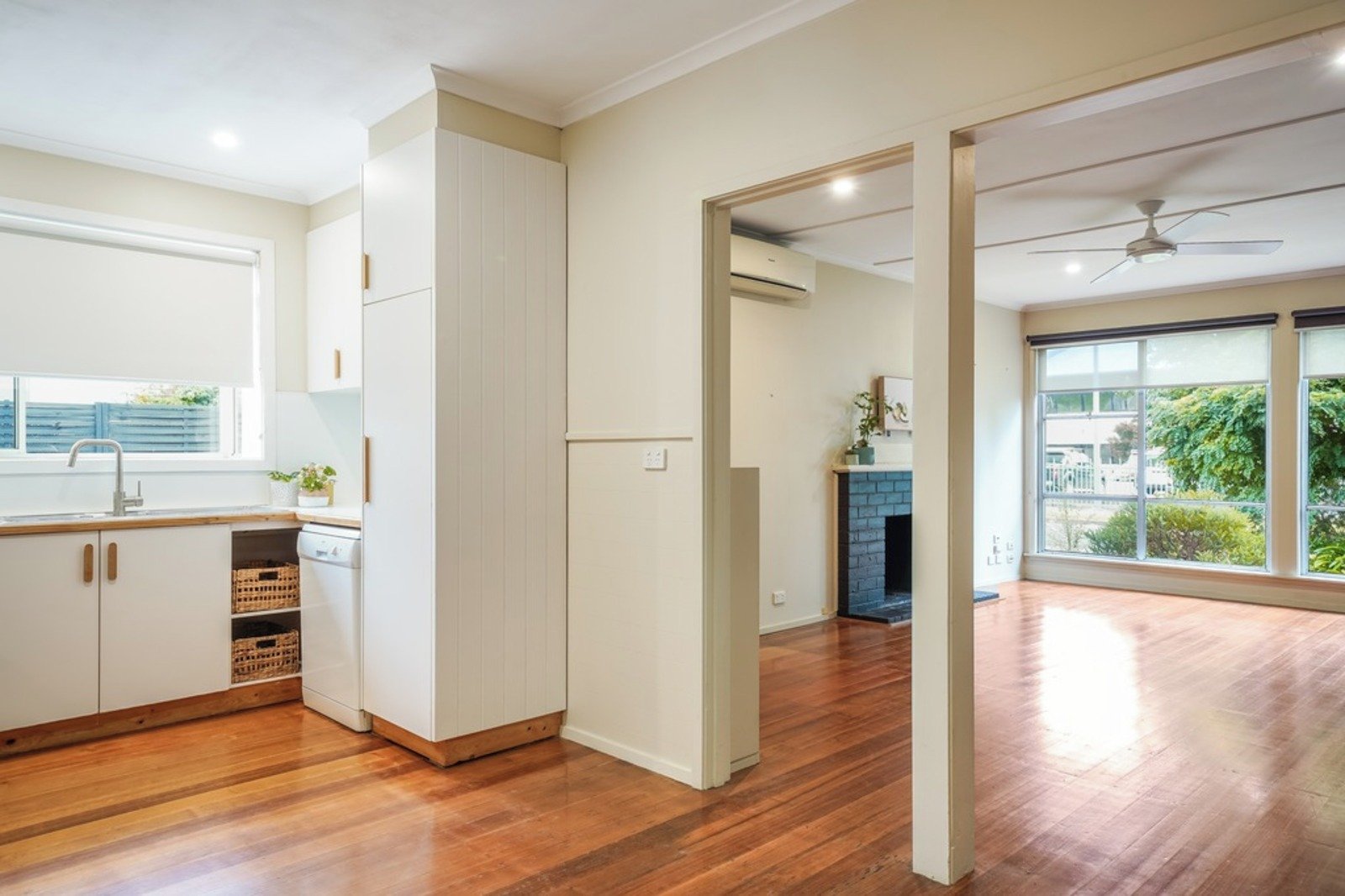 - A perfectly laid out kitchen, dining and lounge area with split system cooling and an ornamental fireplace