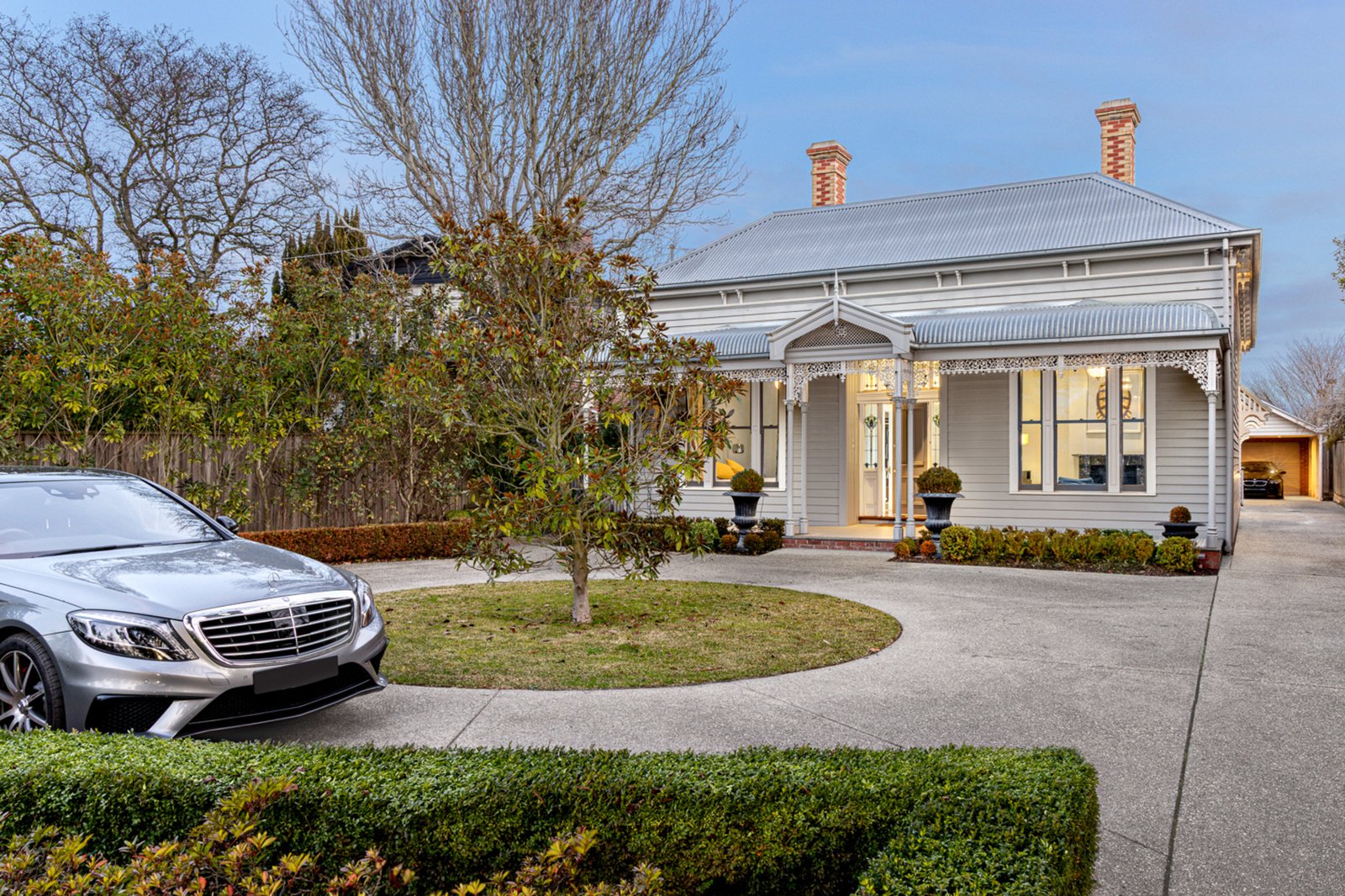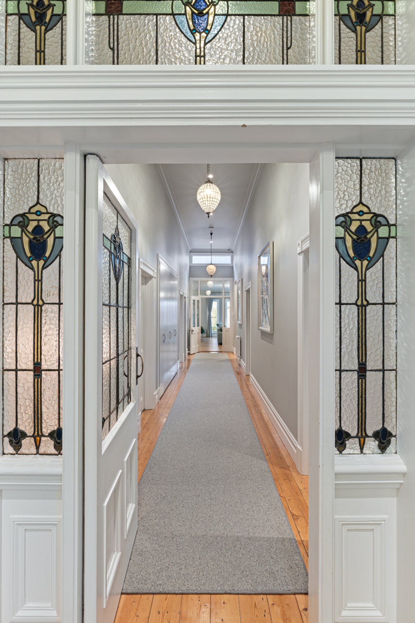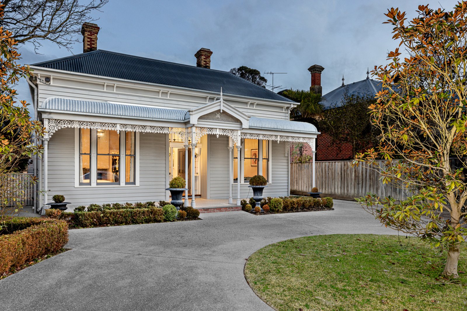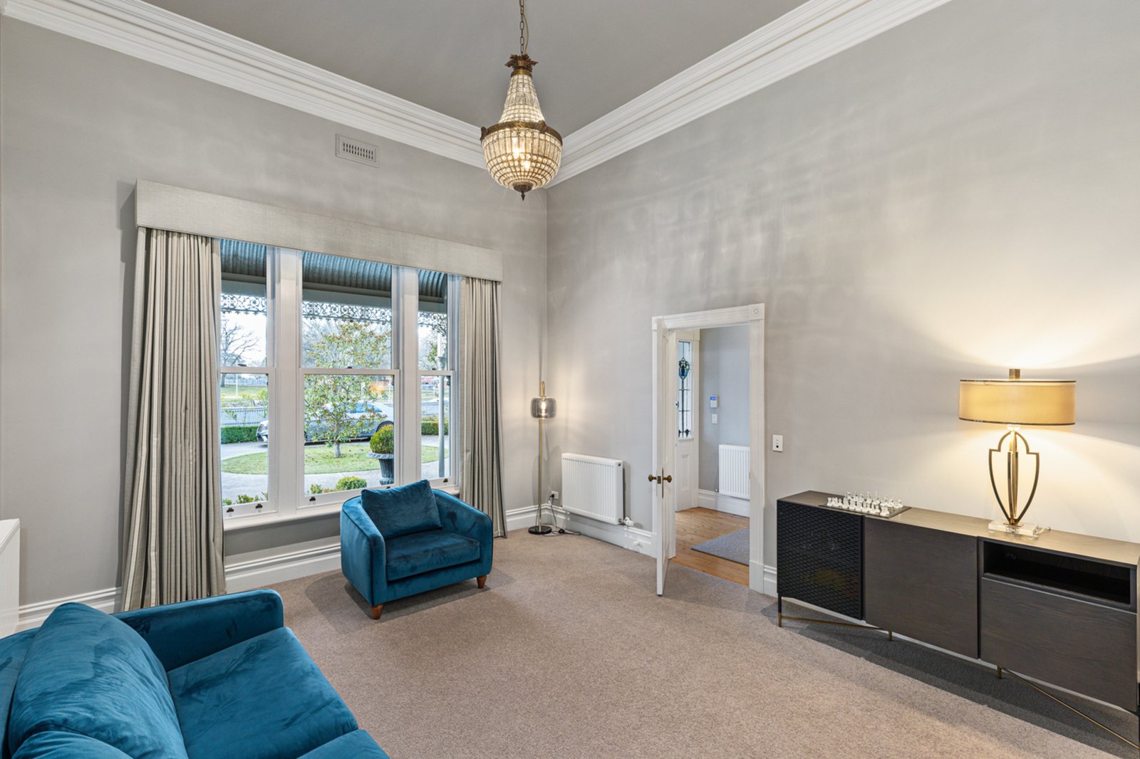 Set behind an attractive picket fence and surrounded by formal landscaped gardens, the circa 1870s double-fronted Victorian home sits proudly on approximately 1021m² and has been masterfully renovated to the highest standard. From the moment you enter, you're welcomed by a grand hallway adorned with Victorian fretwork, soaring ceilings, ornate cornices, ceiling roses, and crystal chandeliers – a true celebration of period architecture.