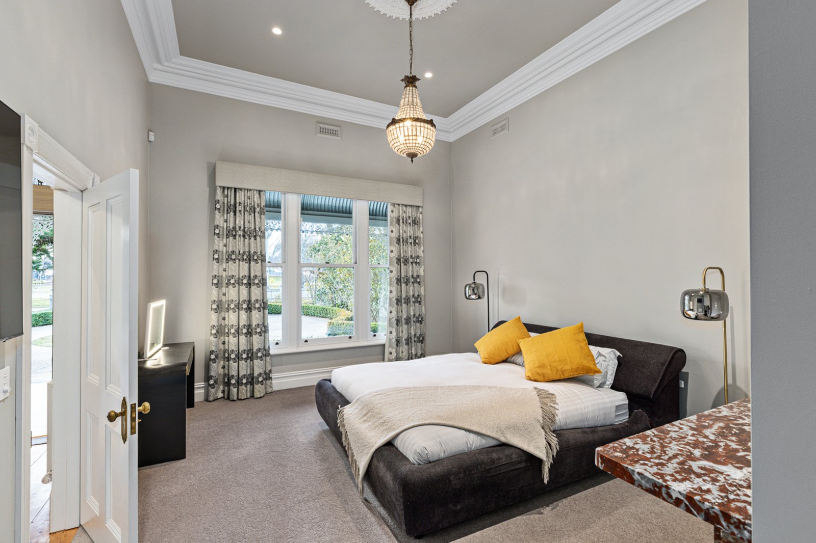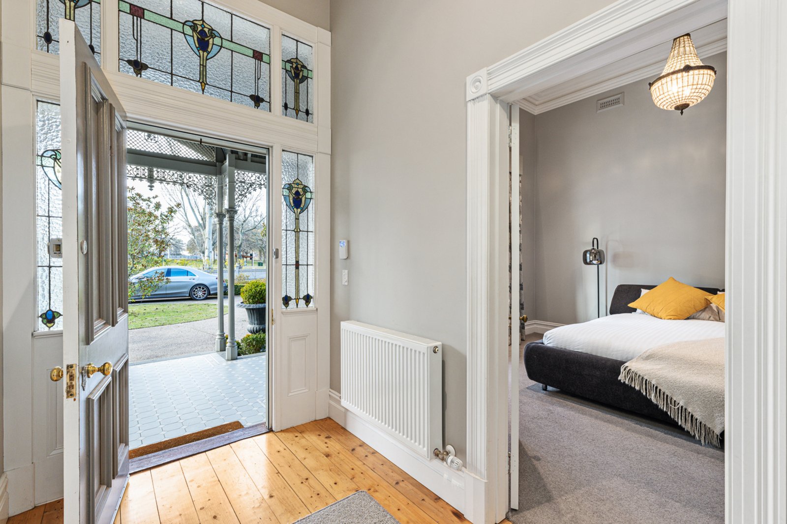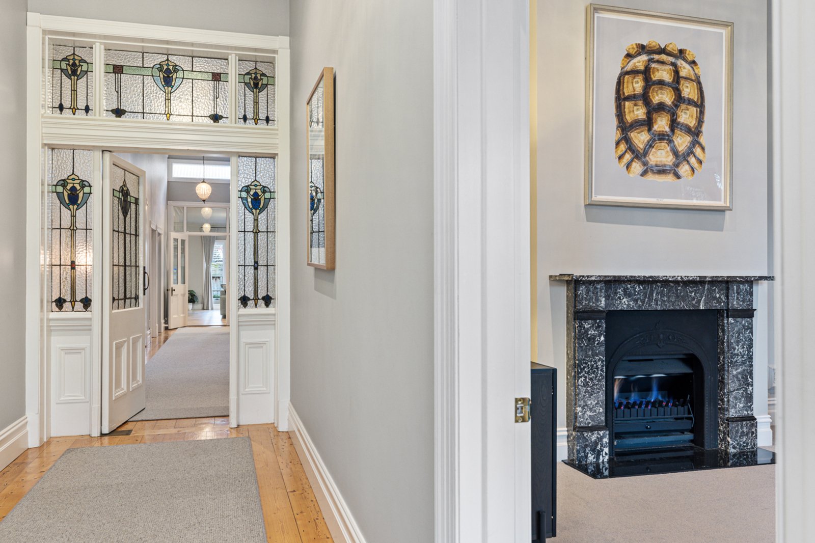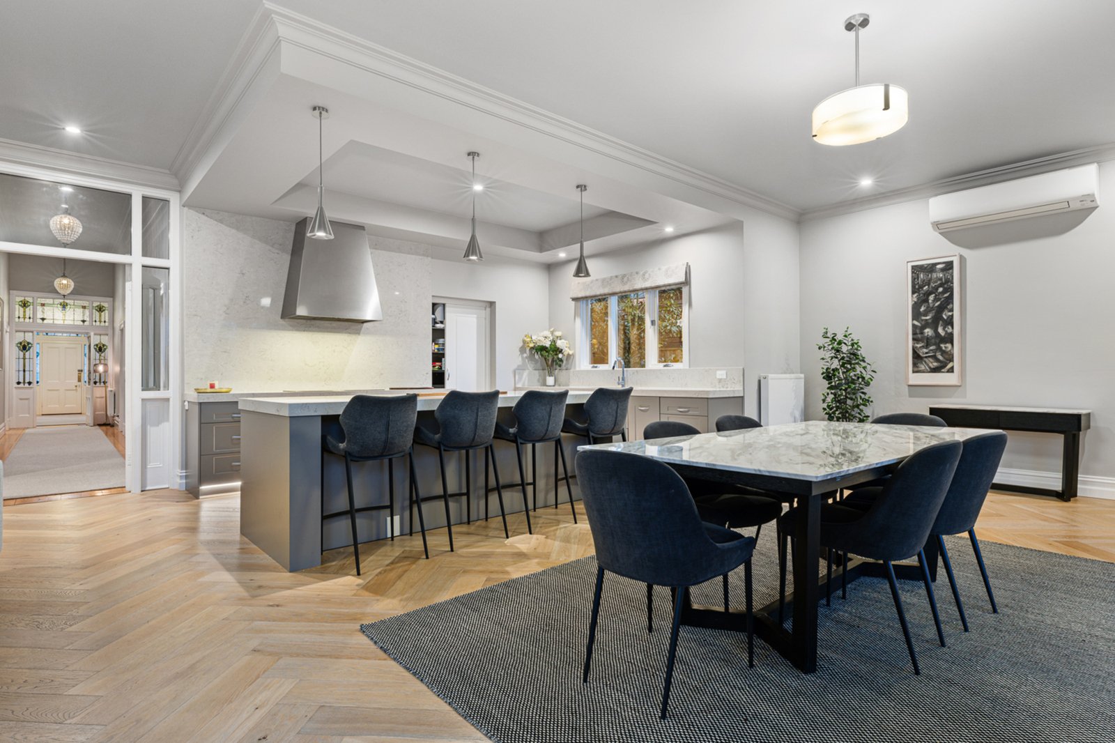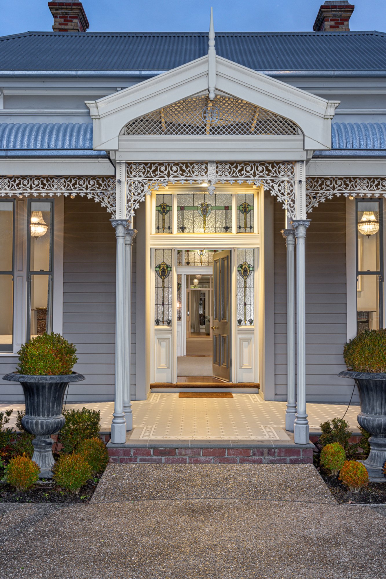 Set behind an attractive picket fence and surrounded by formal landscaped gardens, the circa 1870s double-fronted Victorian home sits proudly on approximately 1021m² and has been masterfully renovated to the highest standard. From the moment you enter, you're welcomed by a grand hallway adorned with Victorian fretwork, soaring ceilings, ornate cornices, ceiling roses, and crystal chandeliers – a true celebration of period architecture.