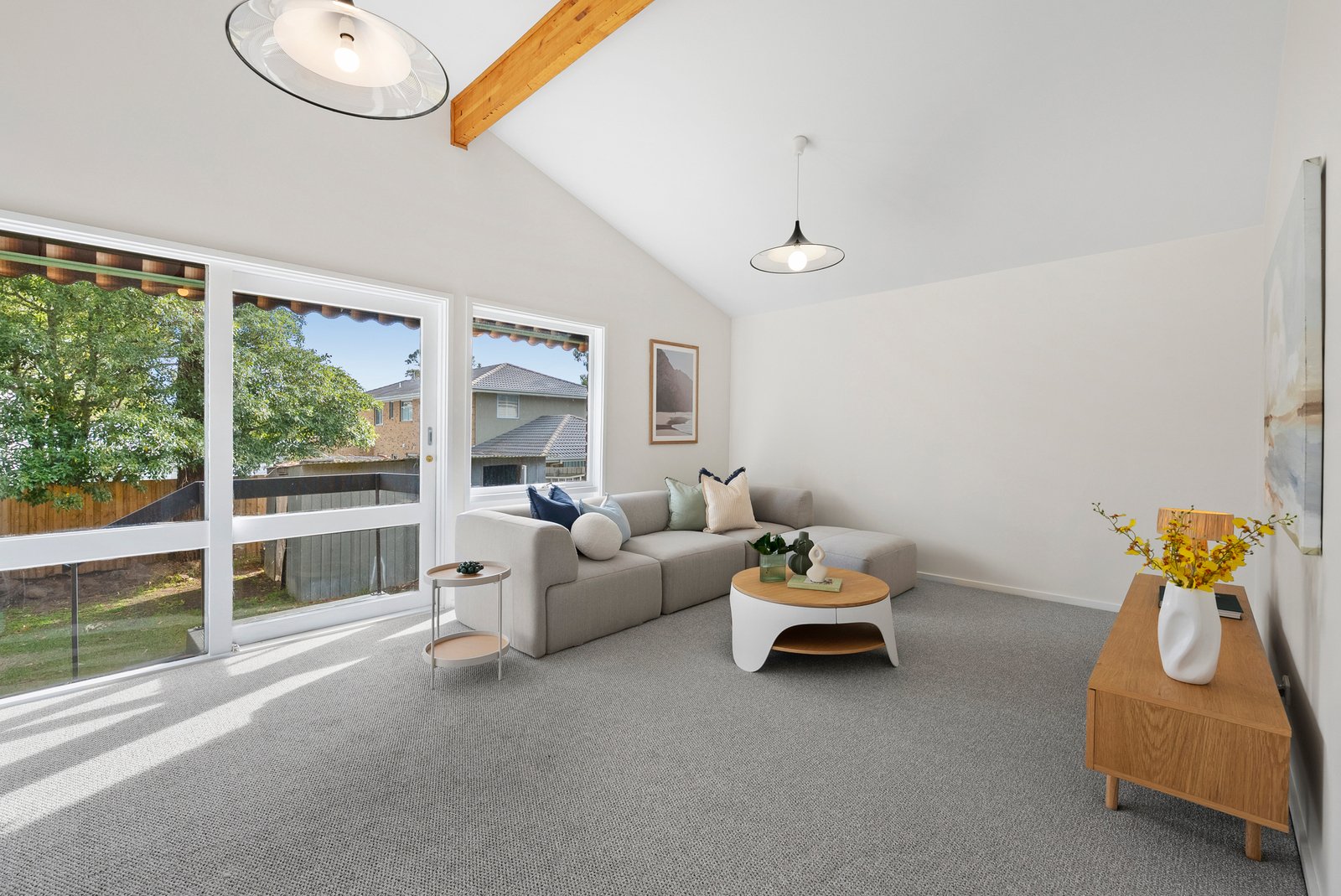 To the rear, an expansive rumpus/lounge zone features broad glazing, raked ceilings and exposed timber accents amplify light, space and architectural warmth, spilling to the private rear garden with plenty of lawn for children and pets to enjoy.