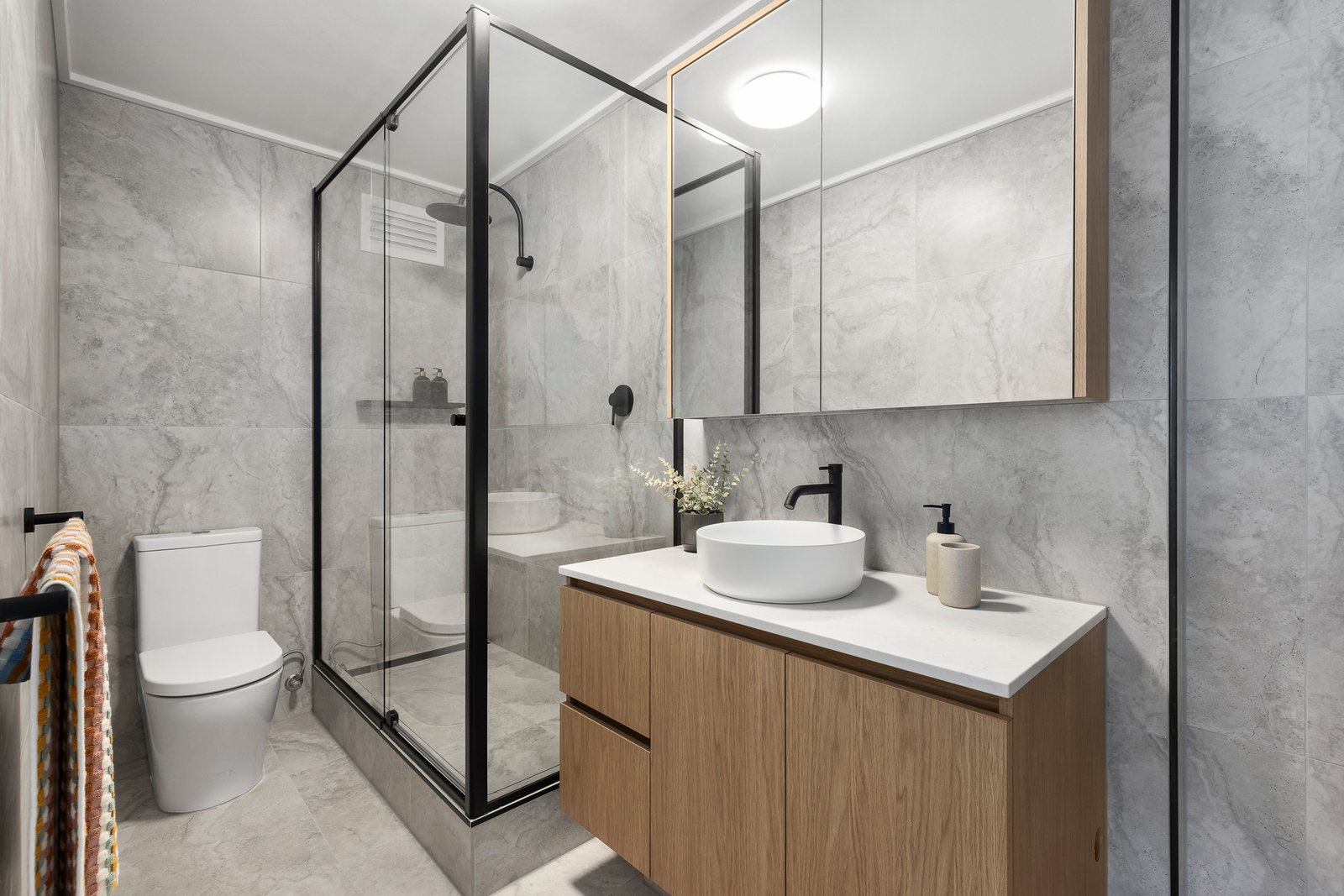 The north‑facing, open‑plan living and dining area is enhanced by sleek bifold doors that seamlessly fold away to reveal a leafy balcony—ideal for elegant entertaining and relaxed urban living. Adjacent to the entry and thoughtfully integrated into the layout is a built‑in study nook, perfect for work-from-home convenience or a creative corner. Complementing this is a well-appointed kitchen features generous bench space a brand-new cooktop and oven, integrated heating and cooling, secure undercover parking, and two serene bedrooms with built-in robes. Boasting two fully renovated bathrooms with luxurious floor‑to‑ceiling tiling and new flooring throughout, the residence presents an impeccably refreshed interior.