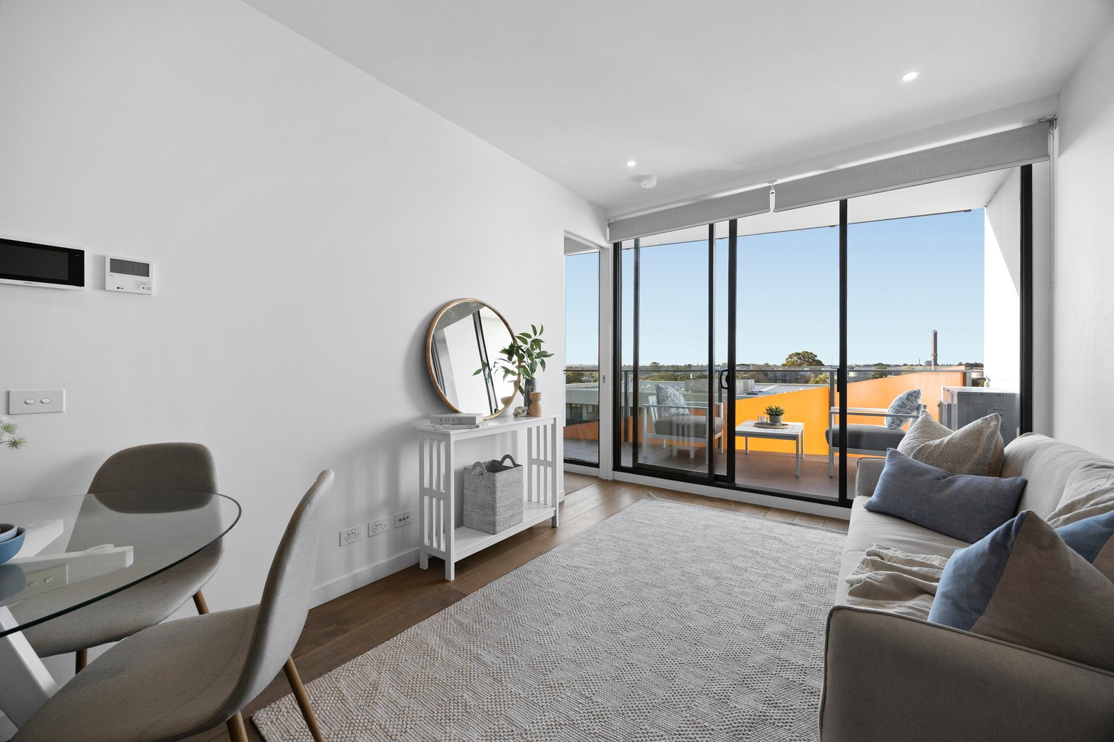 Privately positioned within a well maintained complex, the home opens to a sunny open-plan living and dining domain where floor-to-ceiling glazing connects to a generous balcony terrace, perfect for relaxed entertaining with sweeping leafy vistas extending to the distant Dandenong Ranges.