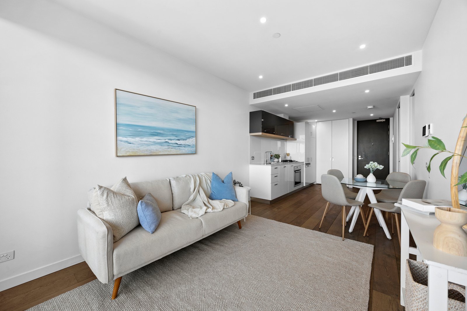 Engineered oak flooring, concealed Euro laundry, reverse-cycle air conditioning, video intercom entry, secure basement parking and a private storage cage further enhance comfort and convenience.