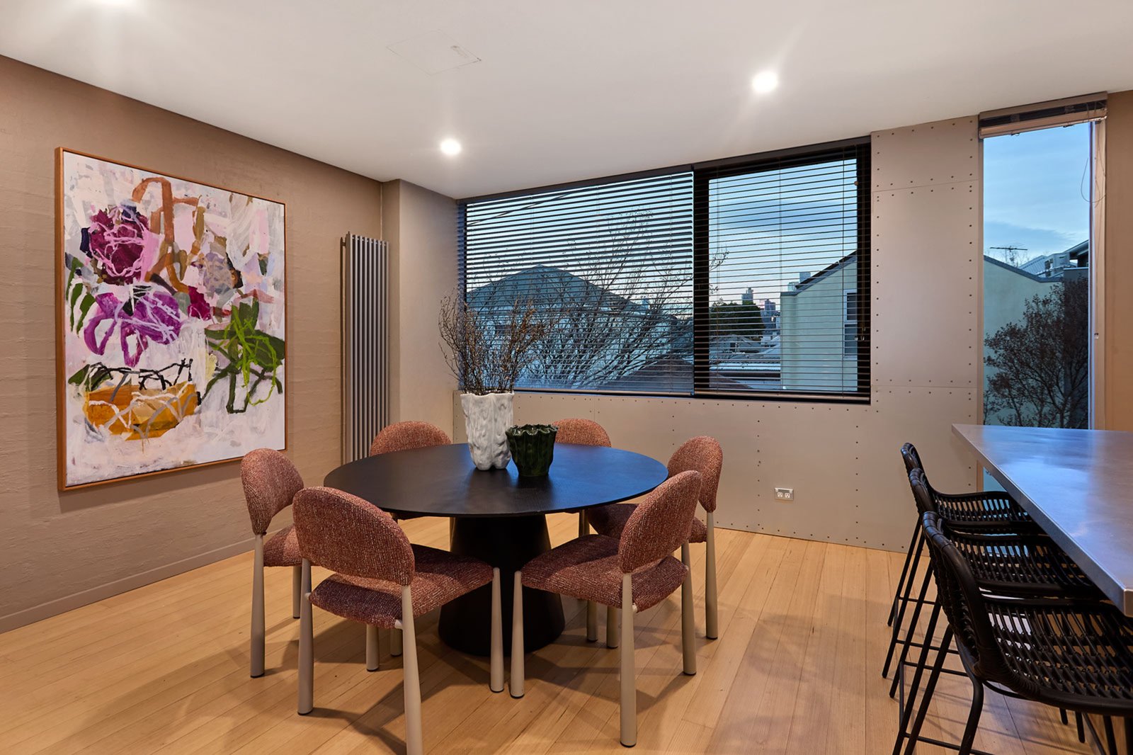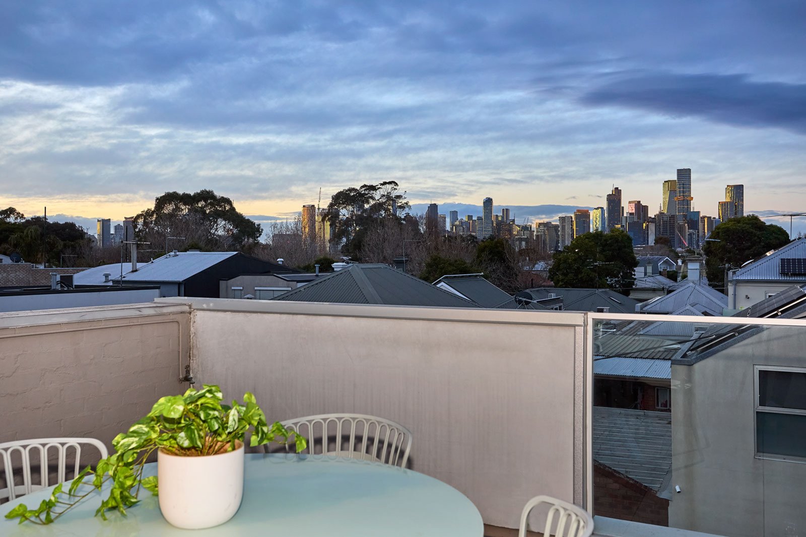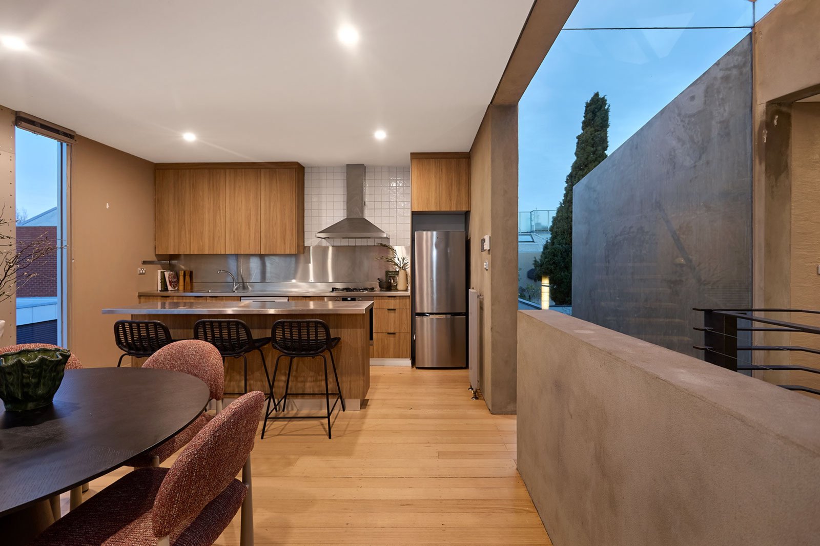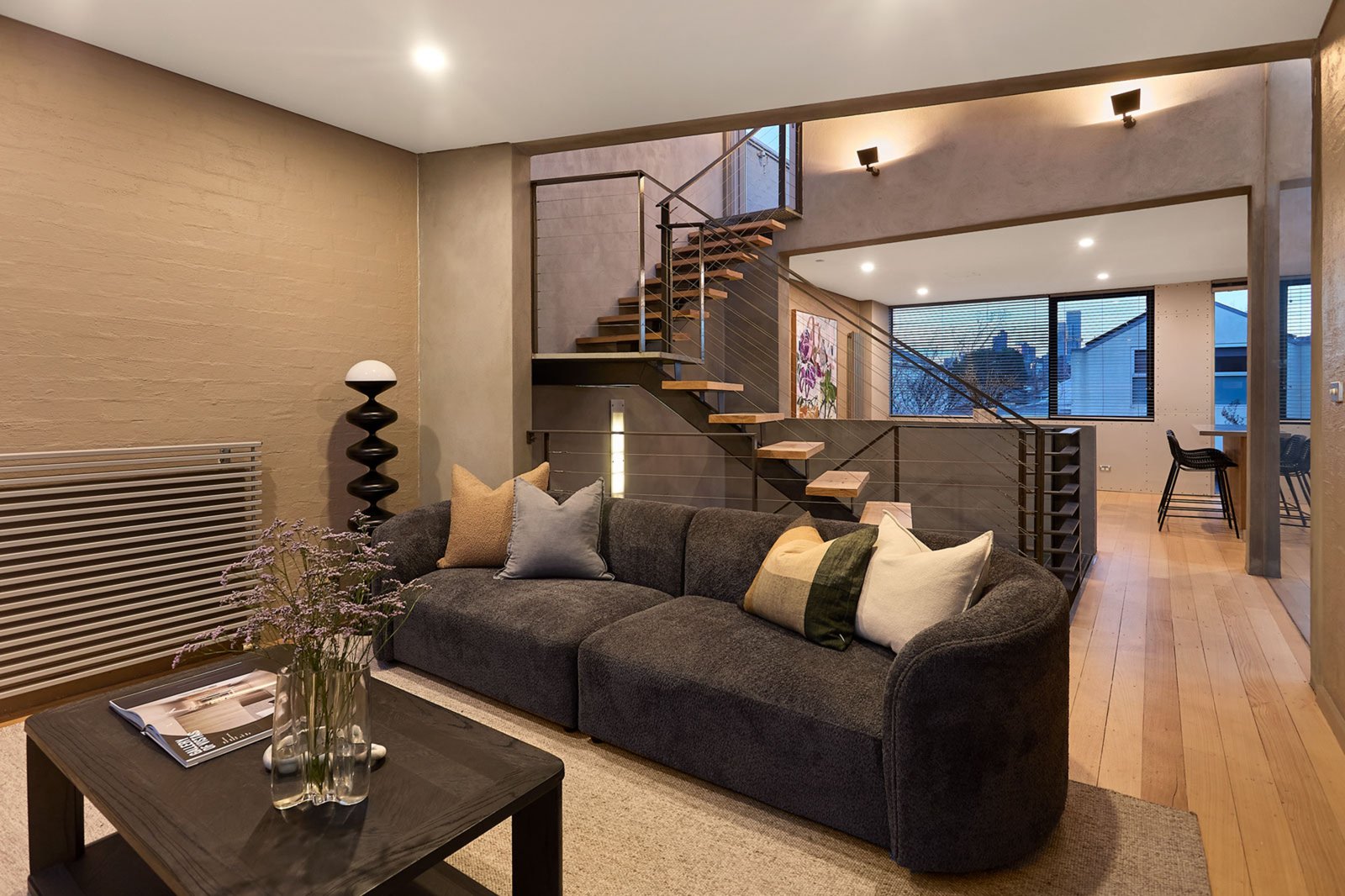 Designed with an inverted floorplan to maximise northern light, the first floor living zone is wrapped in glass, creating an airy sense of scale and connection to the outdoors. From here, step up to a private rooftop terrace where the city skyline becomes your backdrop for entertaining or unwinding.