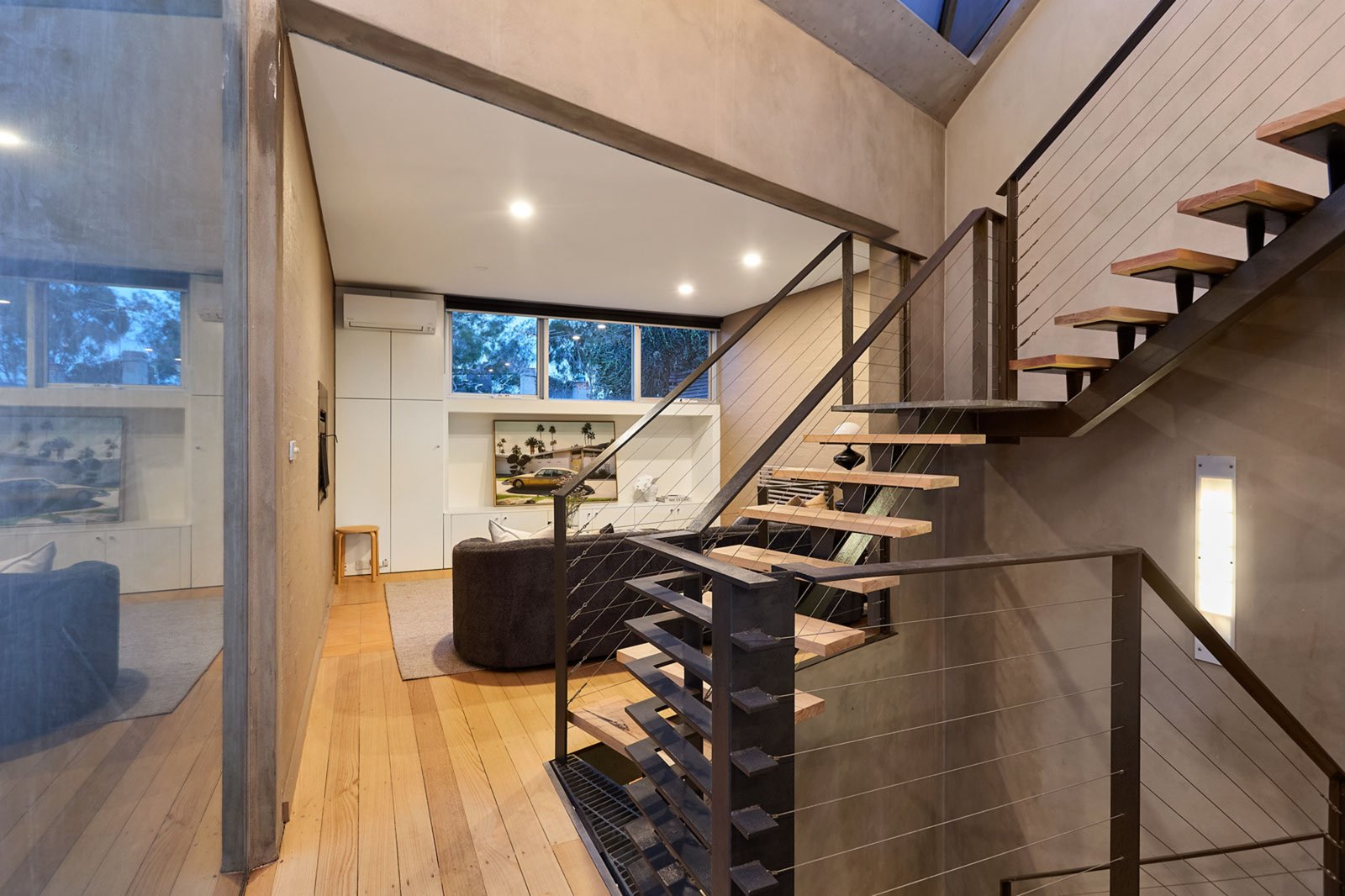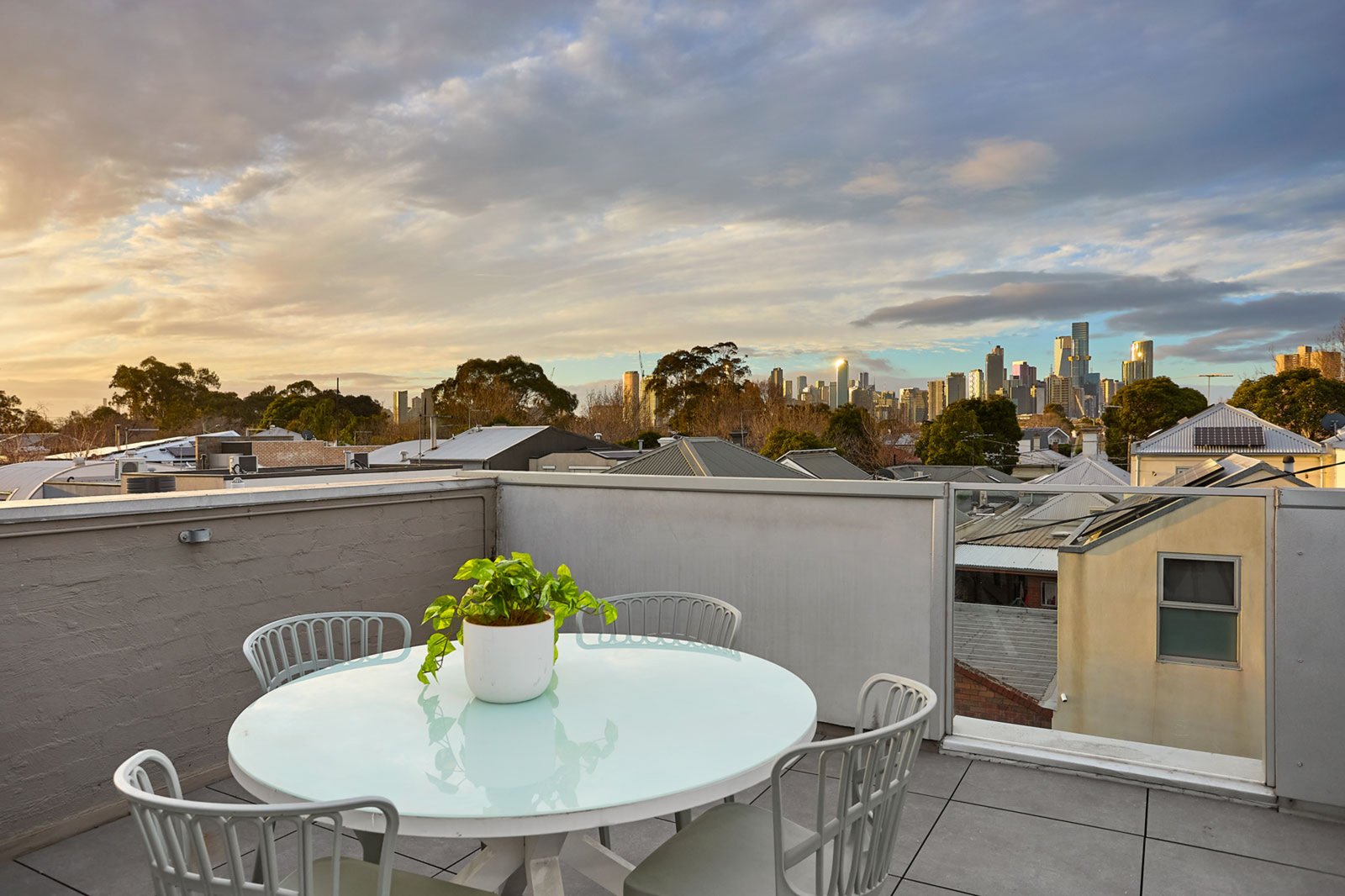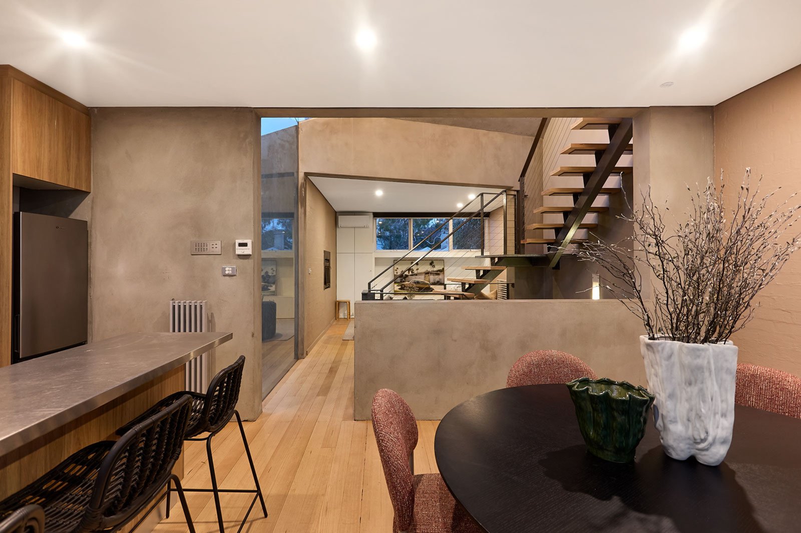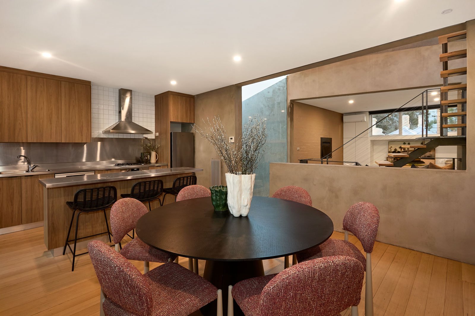 Designed with an inverted floorplan to maximise northern light, the first floor living zone is wrapped in glass, creating an airy sense of scale and connection to the outdoors. From here, step up to a private rooftop terrace where the city skyline becomes your backdrop for entertaining or unwinding.