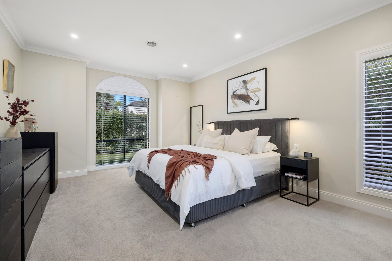 Clever zoning is key, and here there is a huge formal lounge/dining area to the front that can be closed off from the glorious entertaining zone that is flooded with year-round light & warmth and embraces a smart well-equipped kitchen with glossy stone benchtops. The space continues with a separate family/sitting room, which could also be a peaceful study if preferred, while outside the north-facing alfresco patio gives the option to invite loved ones to relax outdoors.