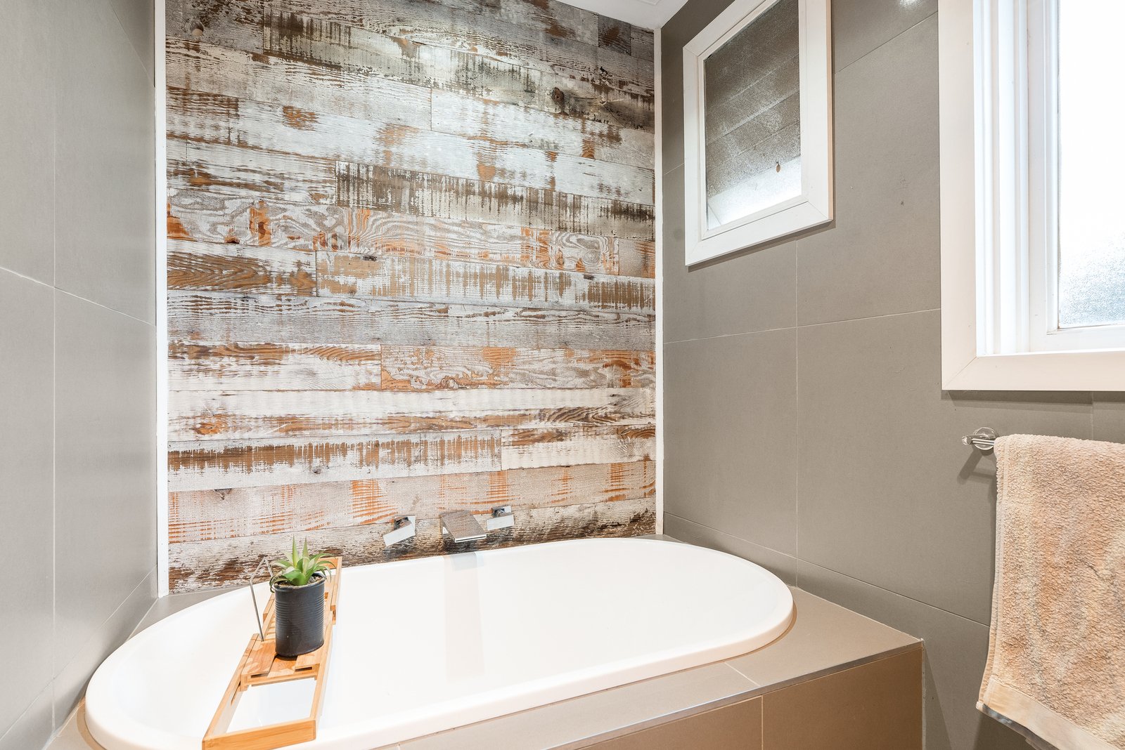 • Renovated central bathroom with modern vanity, bath, and separate toilet