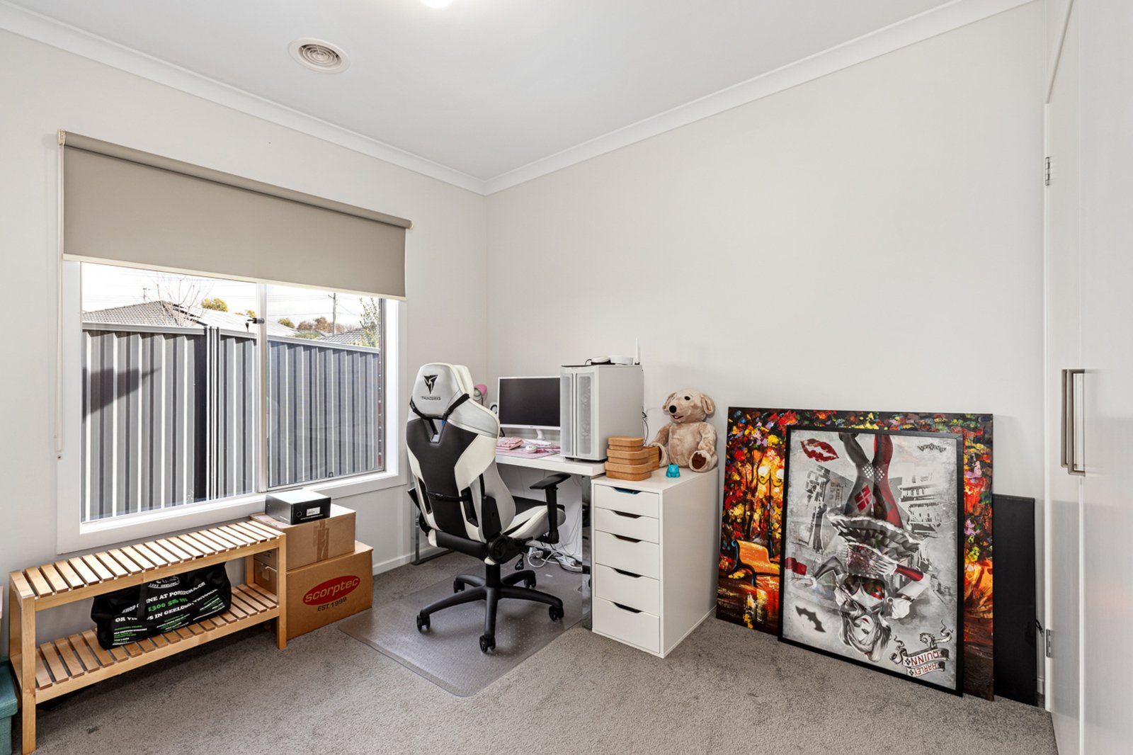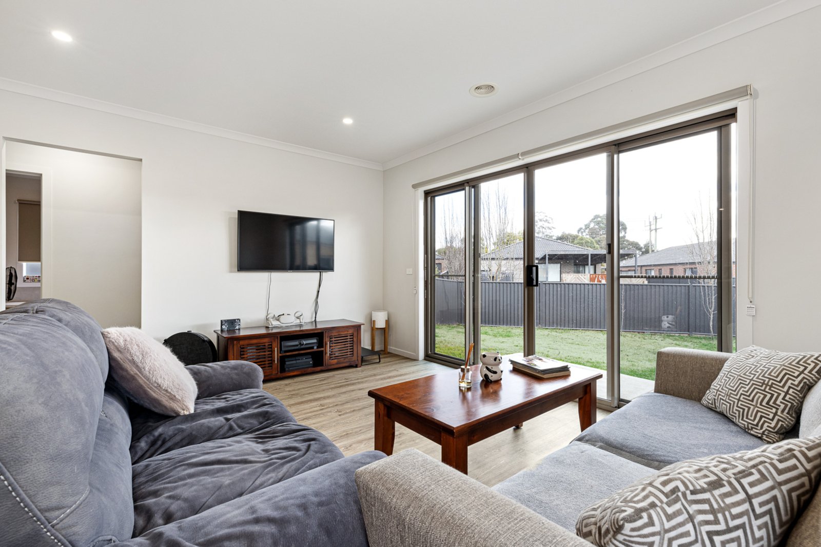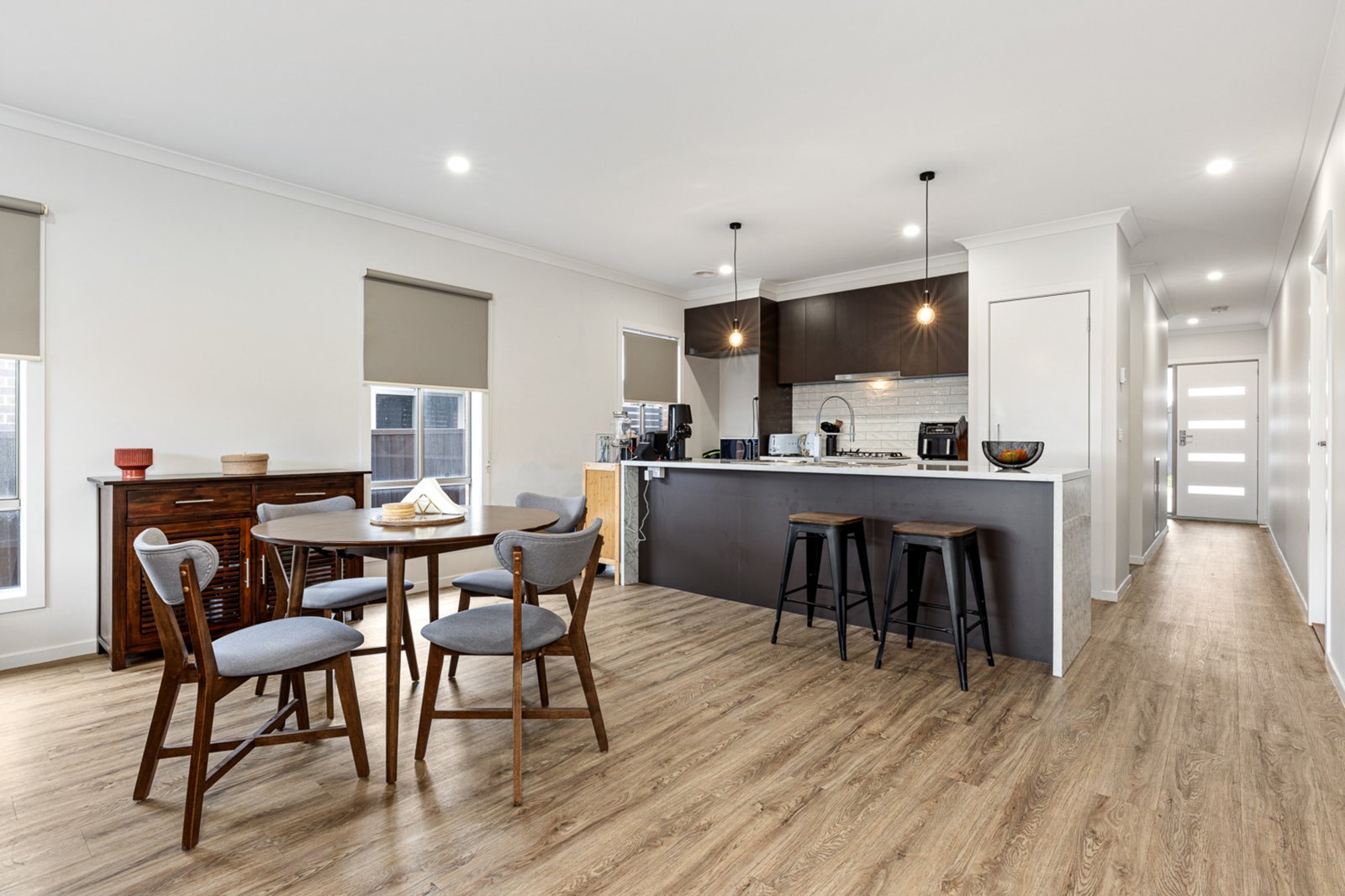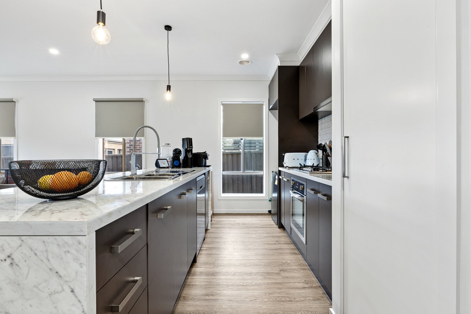 The hallway from the front door leads past a powder room and separate laundry that has outside access. The home then leads to a large open living area with a lovely kitchen including island benchtop, dishwasher, 600 gas stove and electric oven. This overlooks the dining and lounge which in turn leads out to a large rear yard with pear trees.