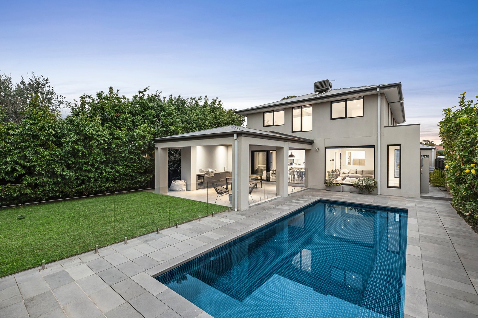 Custom-crafted to display-home calibre, every detail of this four-bedroom, 2.5-bathroom home speaks to considered family living and architectural finesse. The grand proportions begin with a home theatre and extend to a light-filled open plan living and dining domain, warmed by a gas fireplace and seamlessly flowing through sliding stackers to the al fresco zone. Here, cafe-style heating, surround sound and an integrated BBQ kitchen create an unbeatable backdrop for garden get-togethers, while the fully-tiled, heated pool and outdoor shower add resort-style indulgence.