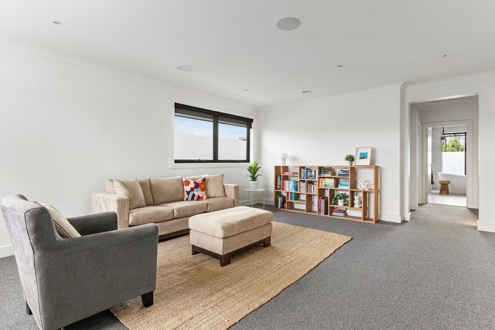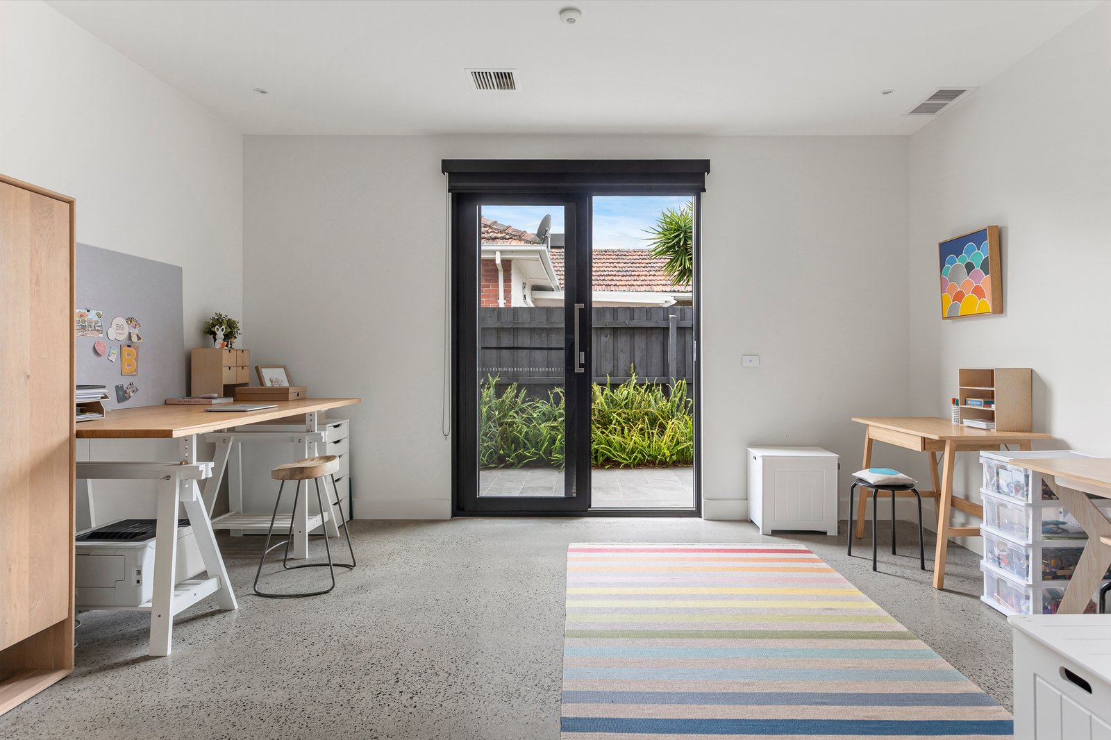 Zoned living ensures every family member is catered to. A versatile home office or playroom connects visually with the kitchen, while upstairs offers a palatial retreat-style parents’ wing with a fitted dressing room and luxe dual-vanity ensuite with underfloor heating. A central kids’ lounge/rumpus anchors three oversized secondary bedrooms (all with built-in robes) and a designer bathroom complete with a sculptural freestanding tub.