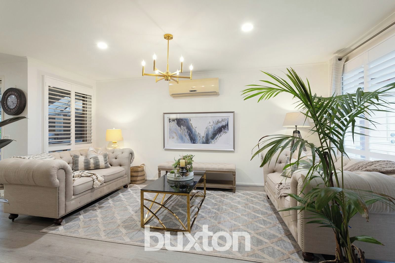 A wide and welcoming entryway sets the tone, leading into a formal front living area adorned with plantation shutters that frame the space with elegance and natural light. At the front of the home, the master suite offers a sense of seclusion, featuring a walk-in robe and a cleverly designed walk-through ensuite that connects to an adjoining powder room — ideal for both privacy and guest convenience. A well-appointed laundry enhances the home’s overall practicality.