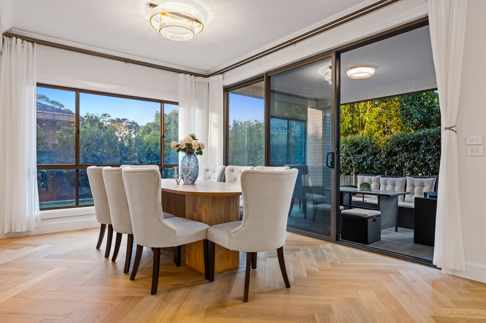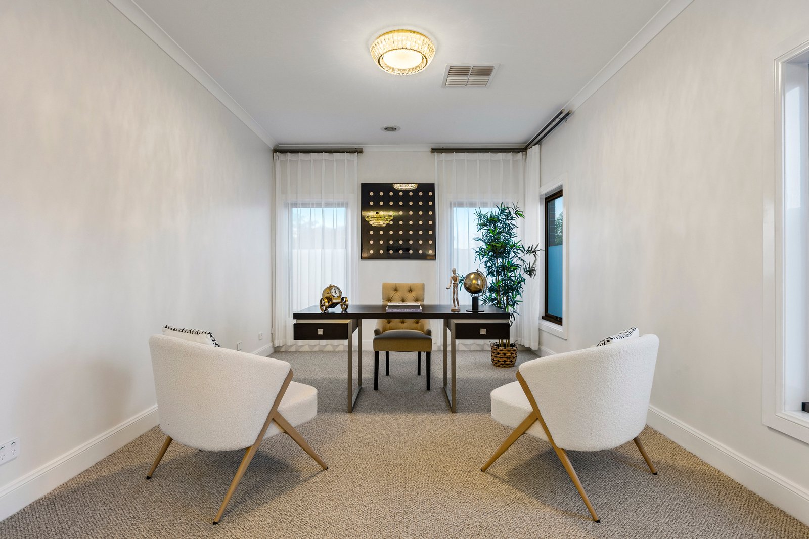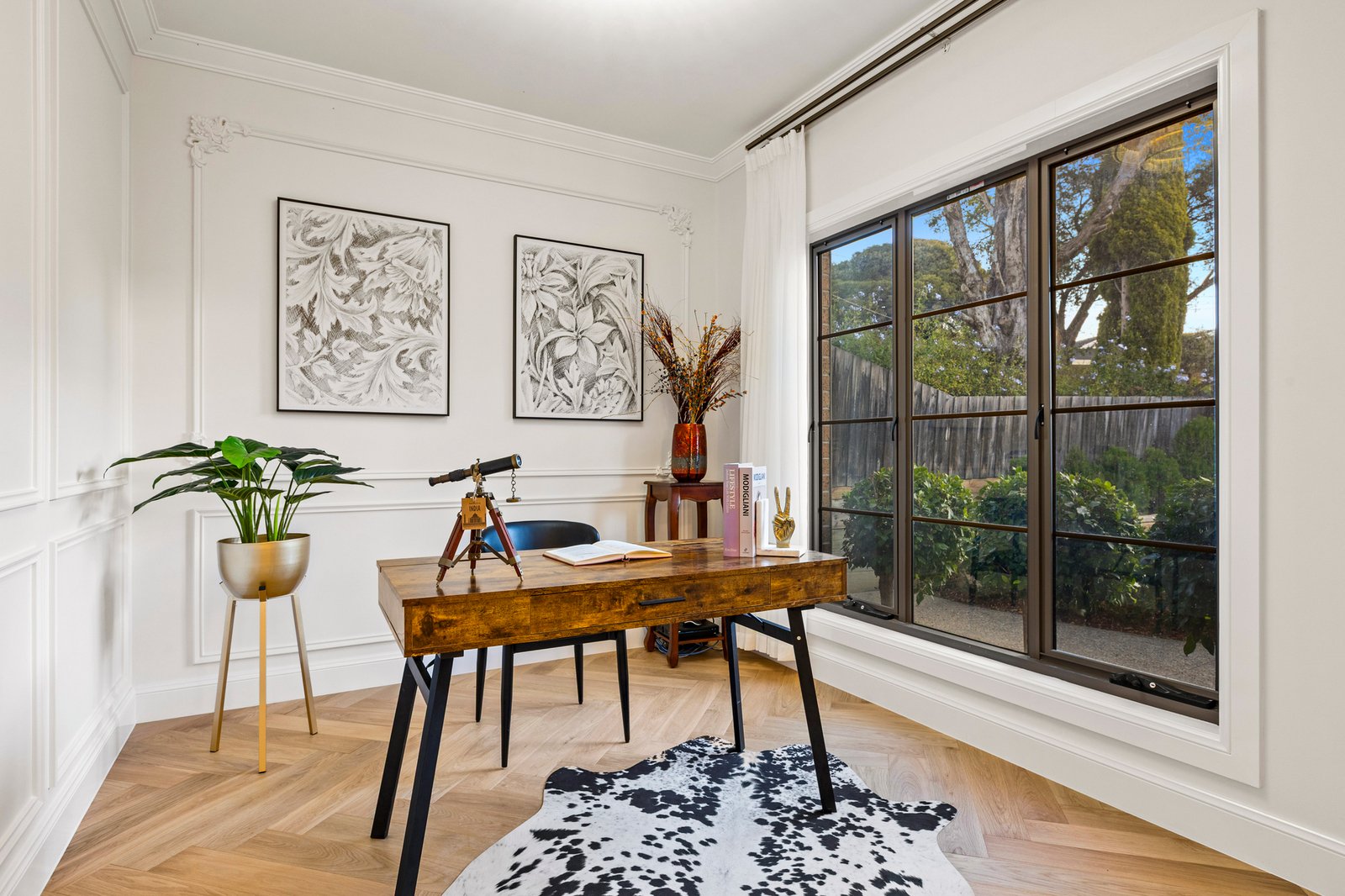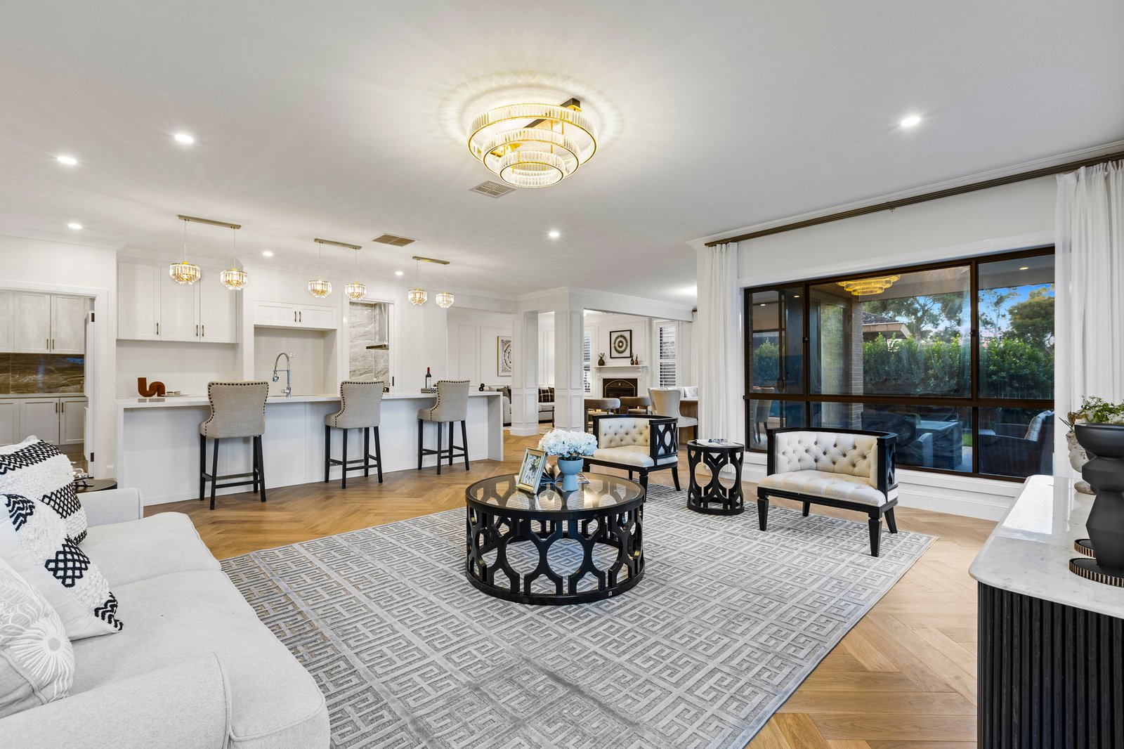 Lavished with premium appointments, the home’s sumptuous design rests beyond double entry doors that grant easy access through to the home office boasting stylish parquetry flooring.