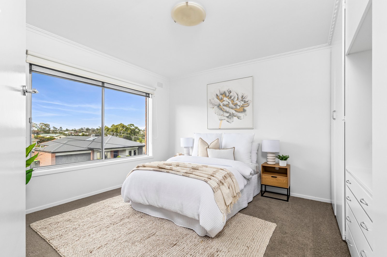 The generous bedroom includes built-in robes and dresser, also capturing picturesque views. The bright bathroom includes a shower, modern vanity, storage, a separate wc, and laundry facilities for fantastic functionality.