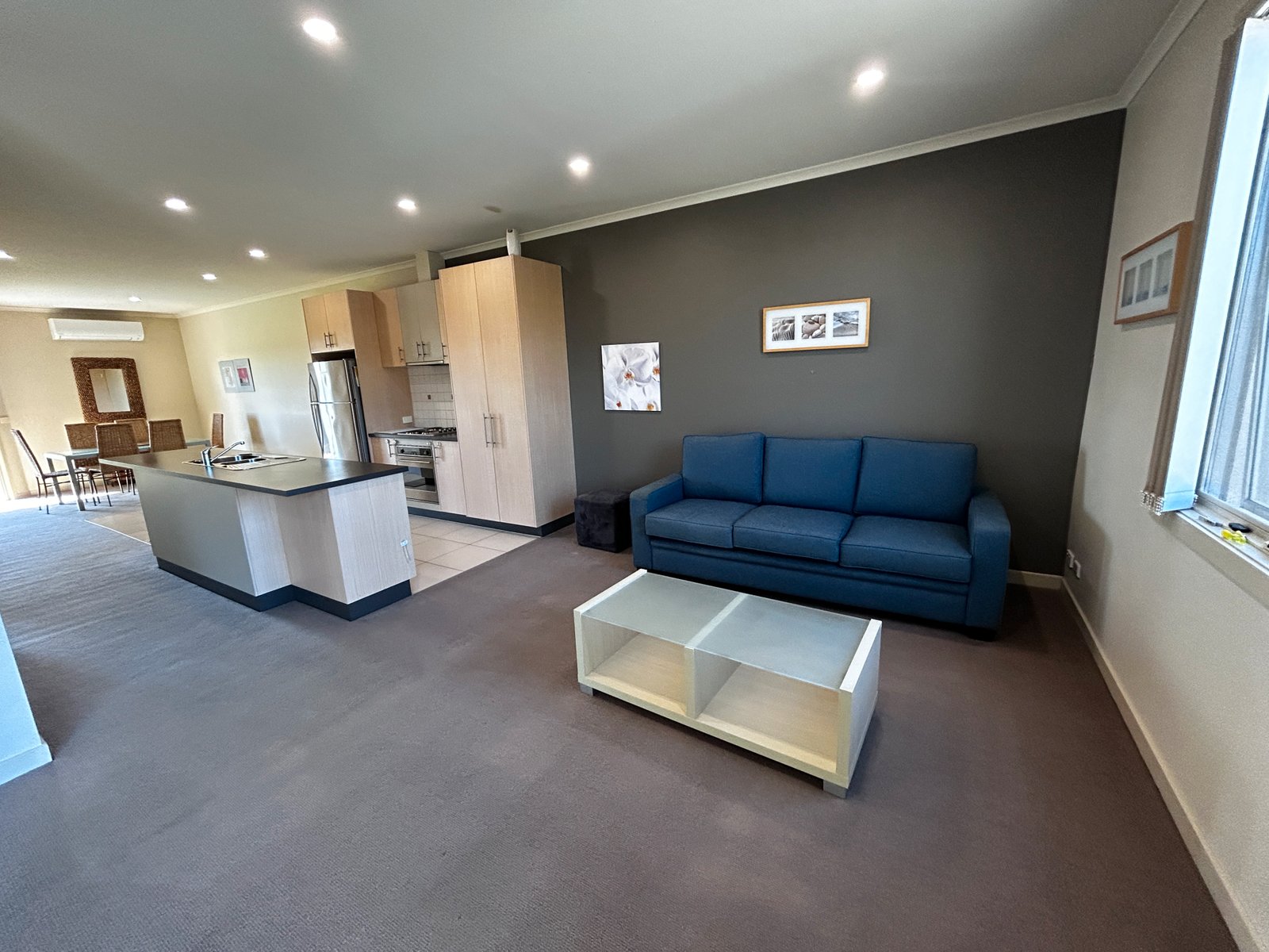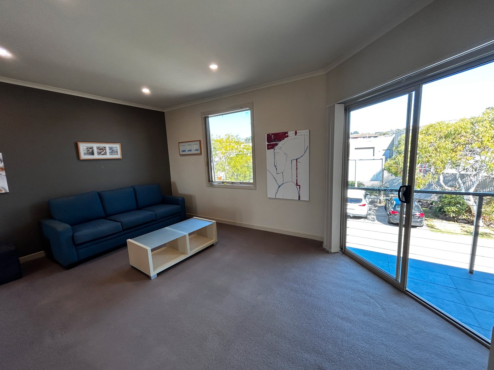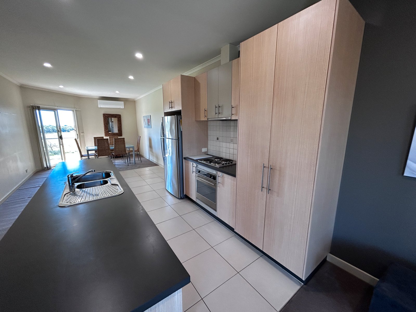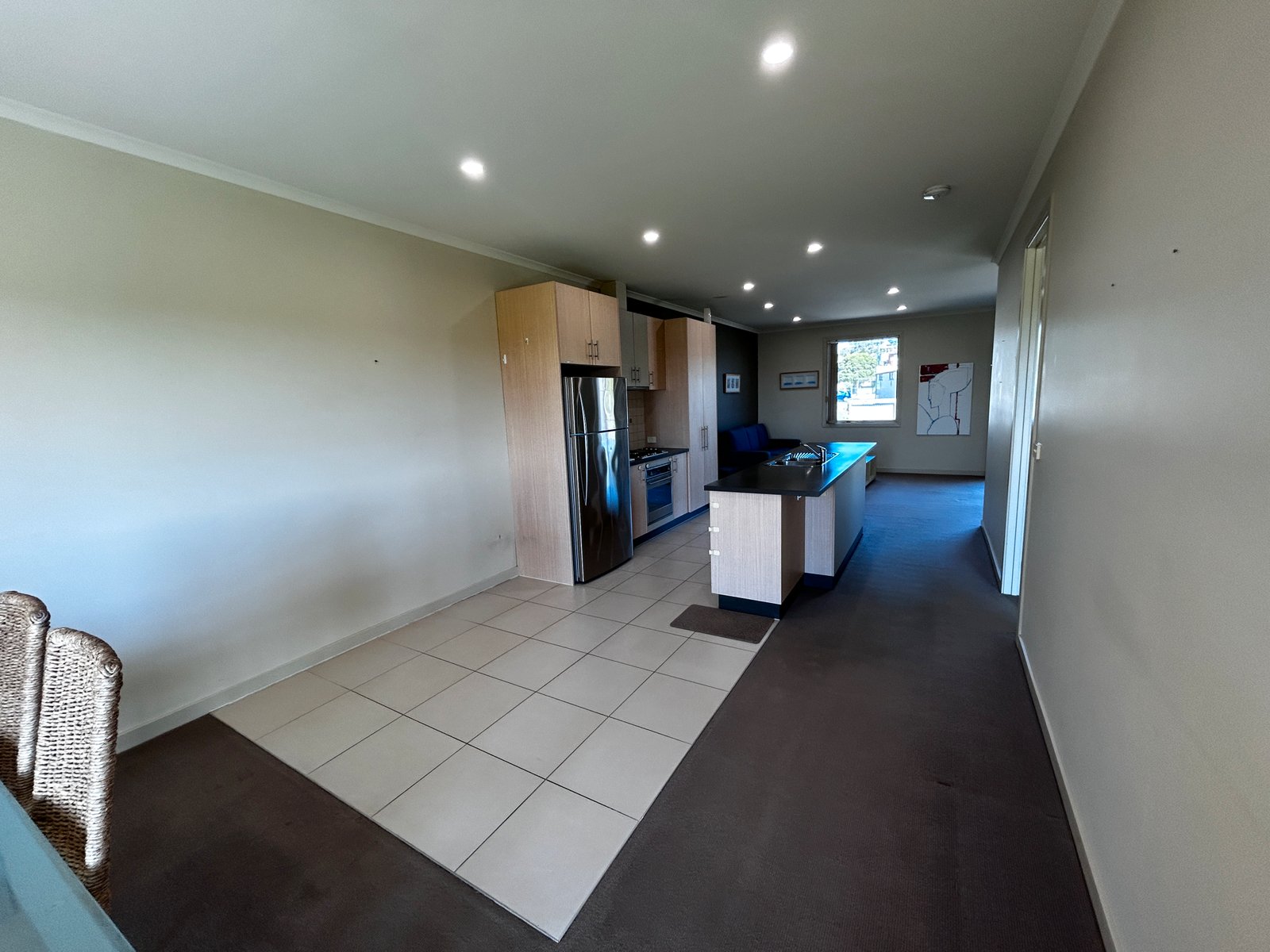 Living room with access to balcony overlooking the complex. Open plan kitchen/dining and 3rd small living room with access to a large balcony overlooking the reserve with water glimpses.