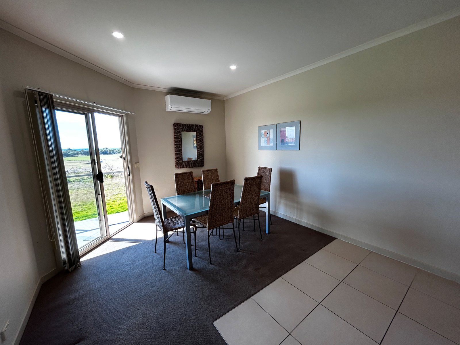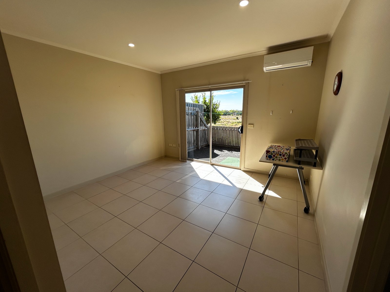 The rumpus / second living room or it can be used as a third bedroom opens to the good size patio area overlooking the Portarlington Recreation Reserve and Football and cricket ovals with Bay water glimpses.
