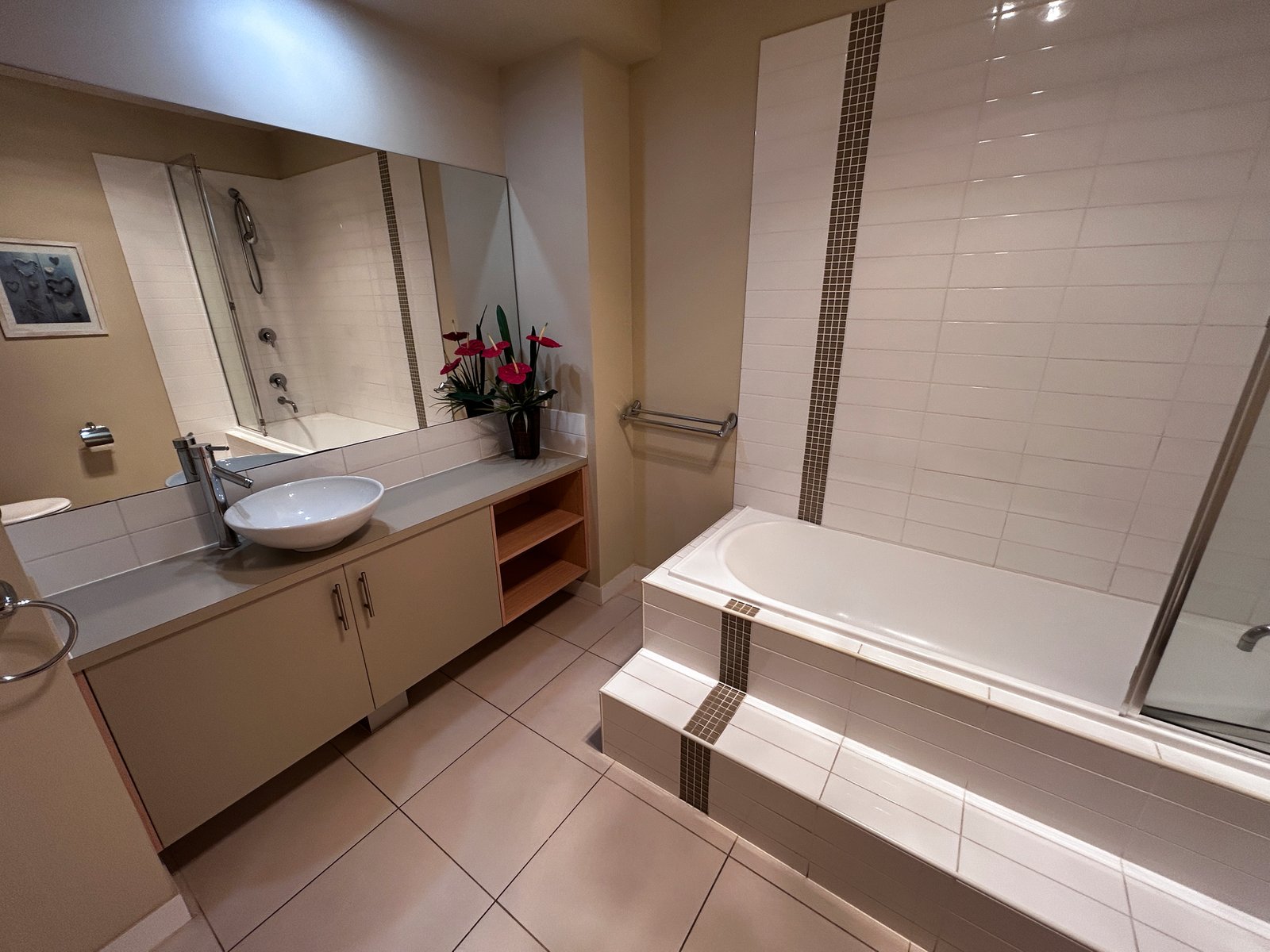 Super spacious master bedroom with his/hers built in robes, access to large balcony overlooking the reserve, spacious ensuite bathroom.