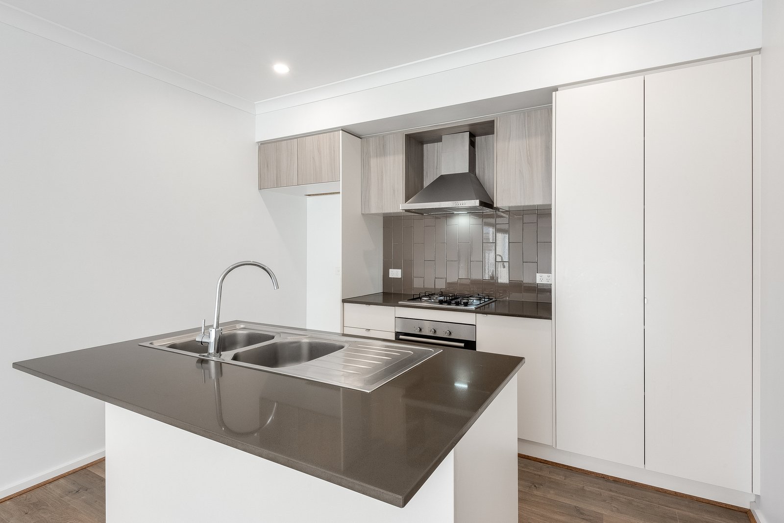 The rear of the home transitions to a light-filled open plan layout. The quality kitchen features stone benchtops, stainless steel appliances including 600mm electric oven, gas cooktop, dishwasher, sleek modern cabinetry, elegant tiled splashback and excellent storage. Positioned to overlook the dining area and living space, the design caters for functional everyday living and easy entertaining.