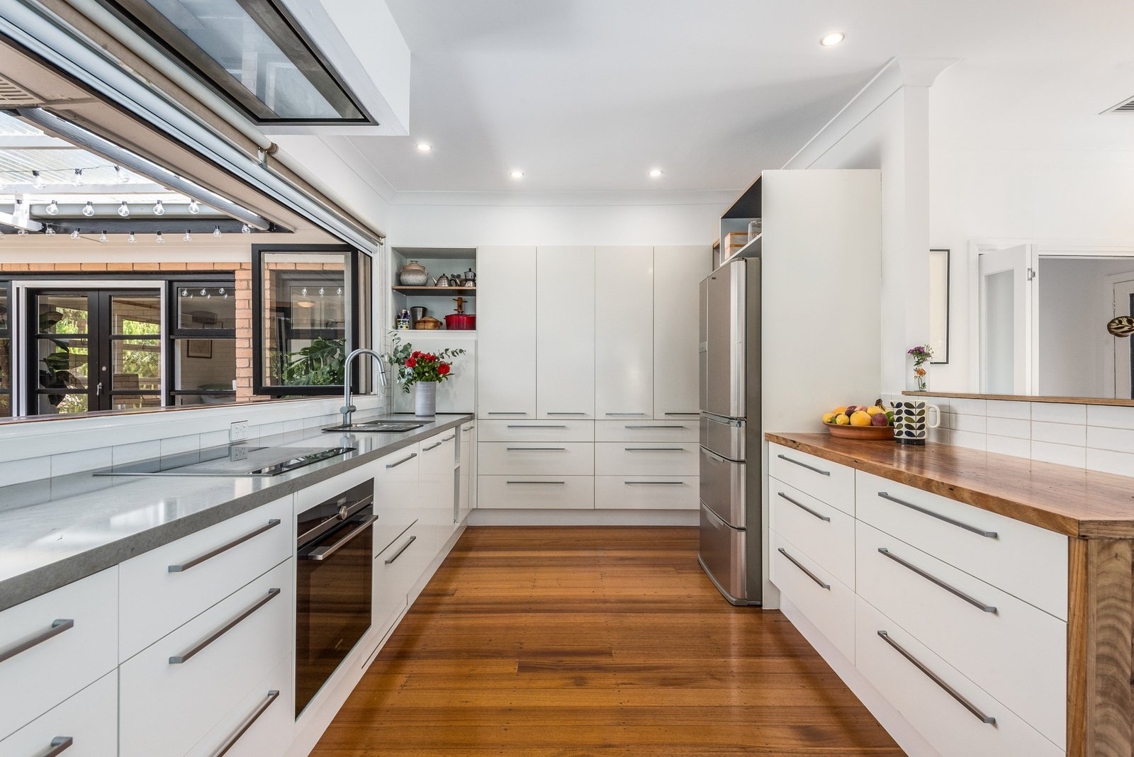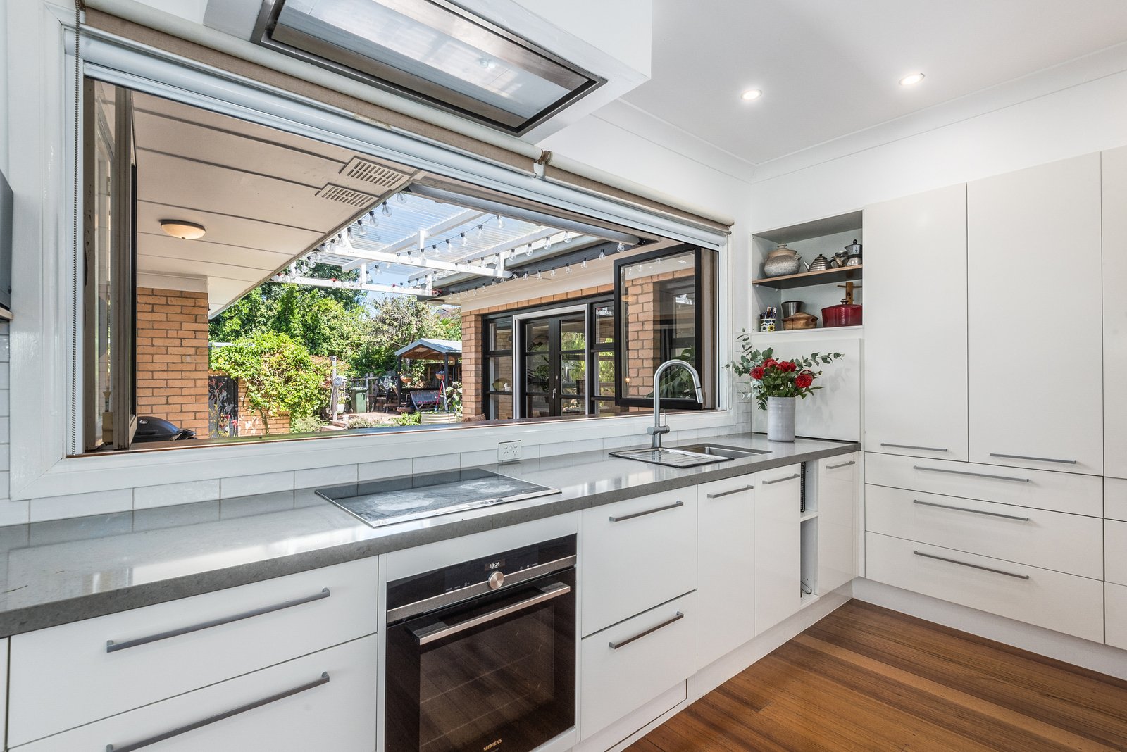 Moving through to the heart of the home, the open-plan living, dining, and kitchen area is bathed in natural light, creating a warm and welcoming ambiance. The updated kitchen offers an abundance of cabinetry and bench space, complete with retractable fly screens and bi-folding windows overlooking the outdoor entertaining area. Both the dining and living spaces flow seamlessly from the kitchen, providing the perfect place to relax or host family and friends.