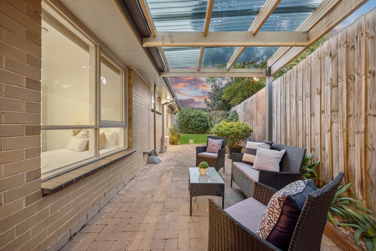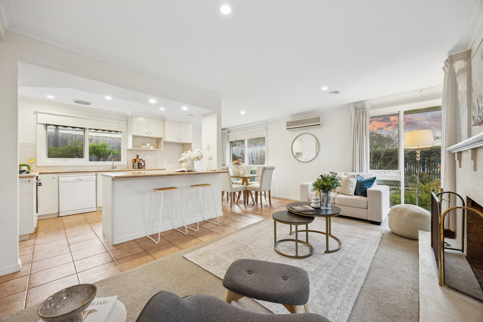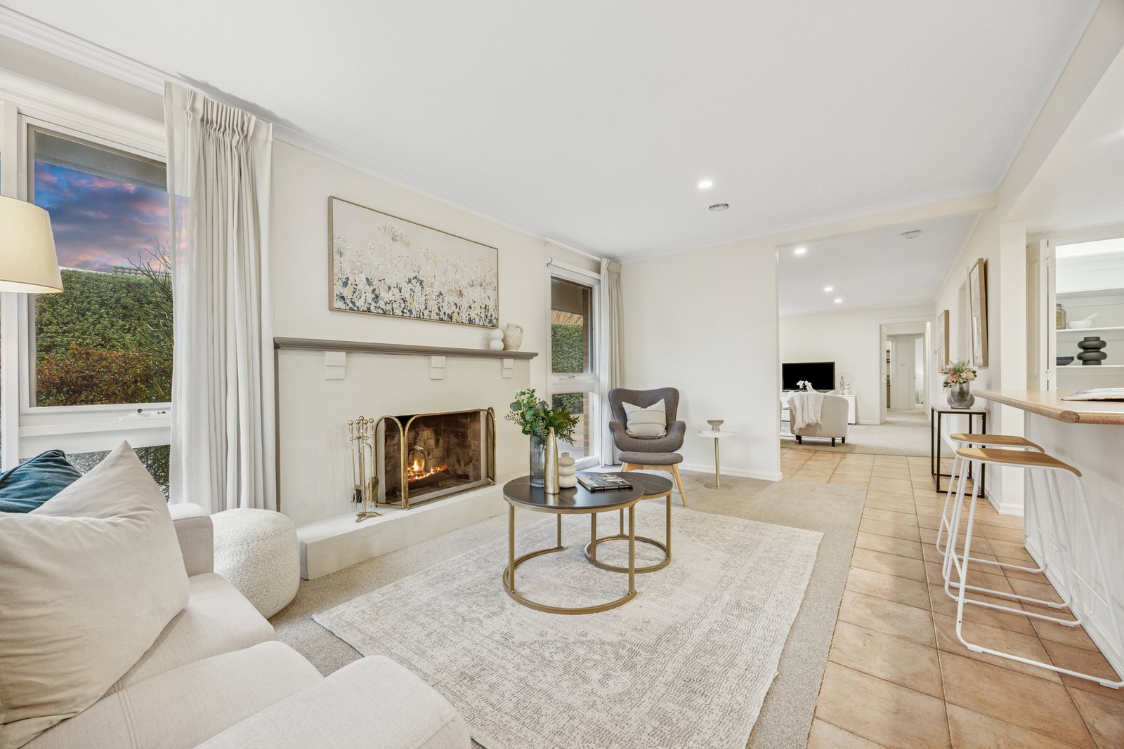Set within a private & secure garden setting and beautifully presented throughout, the 3-bedroom home is screened from passers-by thanks to a high gated fence. Spanning a single, well-planned level, its practical layout includes the luxury of dual living zones: a tranquil lounge is perfect for quiet nights in, whilst the casual family/dining area is anchored by a modern kitchen and centred around a cosy open fireplace – ideal for both family relaxation and effortless hosting.
