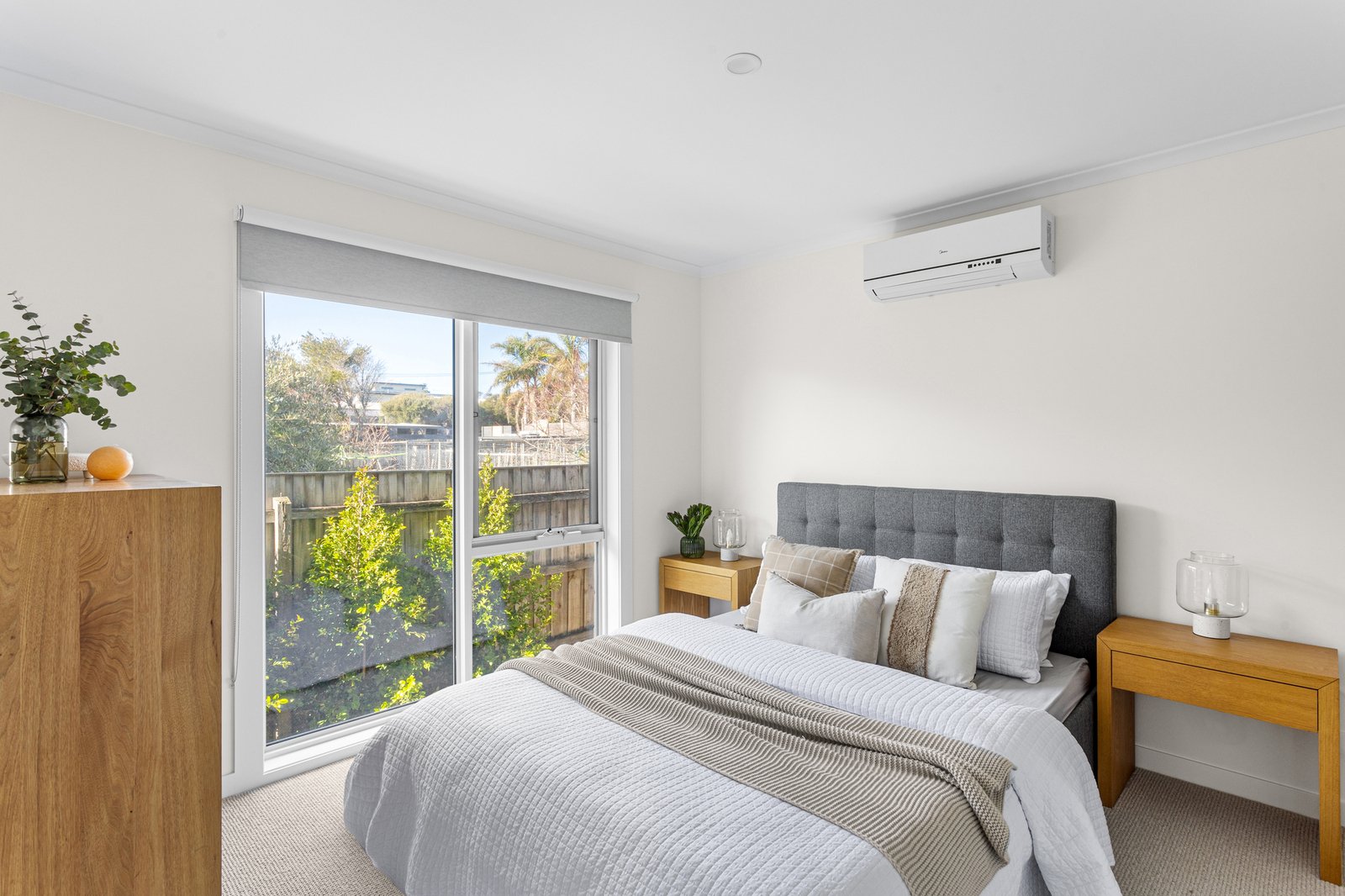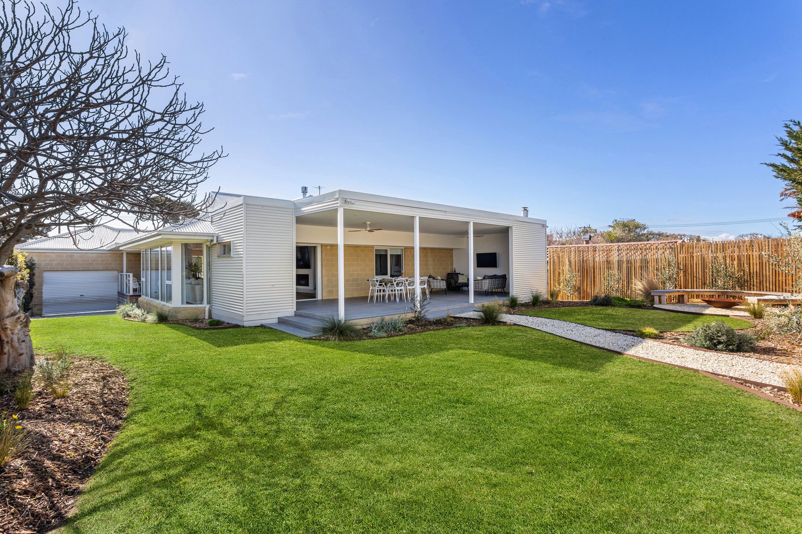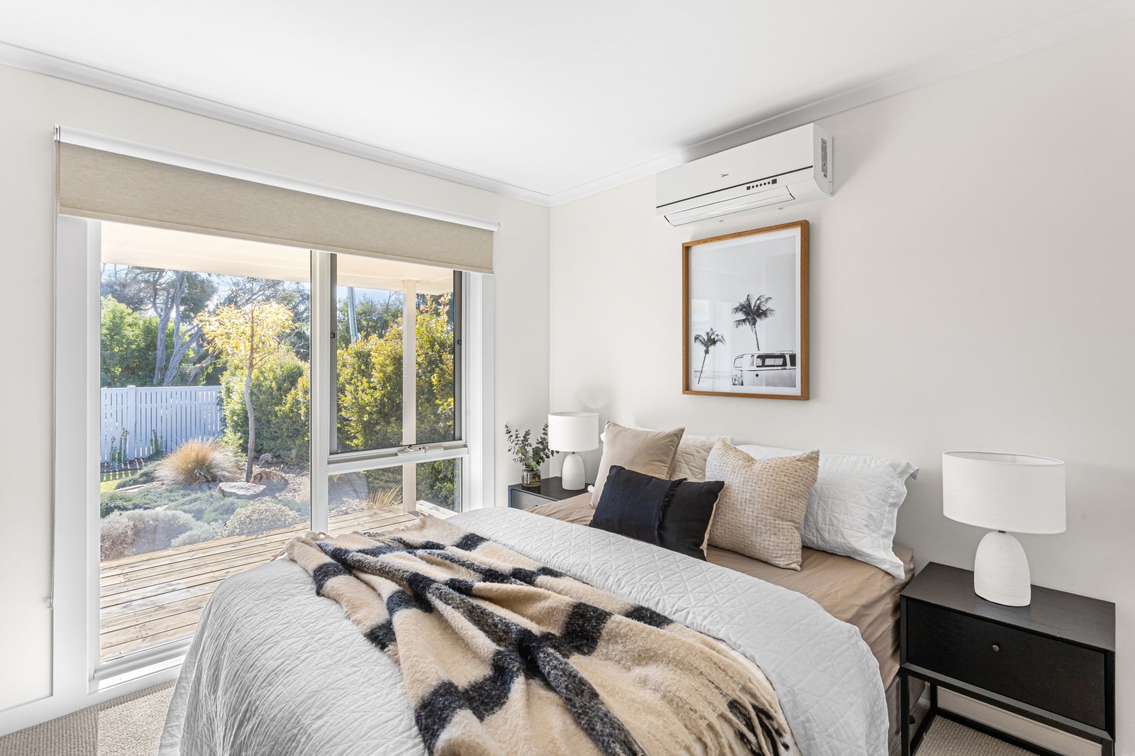 The main bedroom suite is a highlight, hidden behind a timber-clad wall with a walk-in robe and a private en-suite enriched by stone surfaces and brushed brass tapware. Three additional bedrooms each feature built-in robes and share a beautifully appointed bathroom with a freestanding bath, while a remote double garage with rear access and secure gates offers peace of mind. Split system heating and cooling, plenty of storage and a garden shed add everyday ease, all just moments from the national park, the beach, local schools and village shopping. Whether a permanent base or a holiday escape, it’s a home designed for those who love the coast and a lifestyle that comes with it, all on 864 sqm (approx).