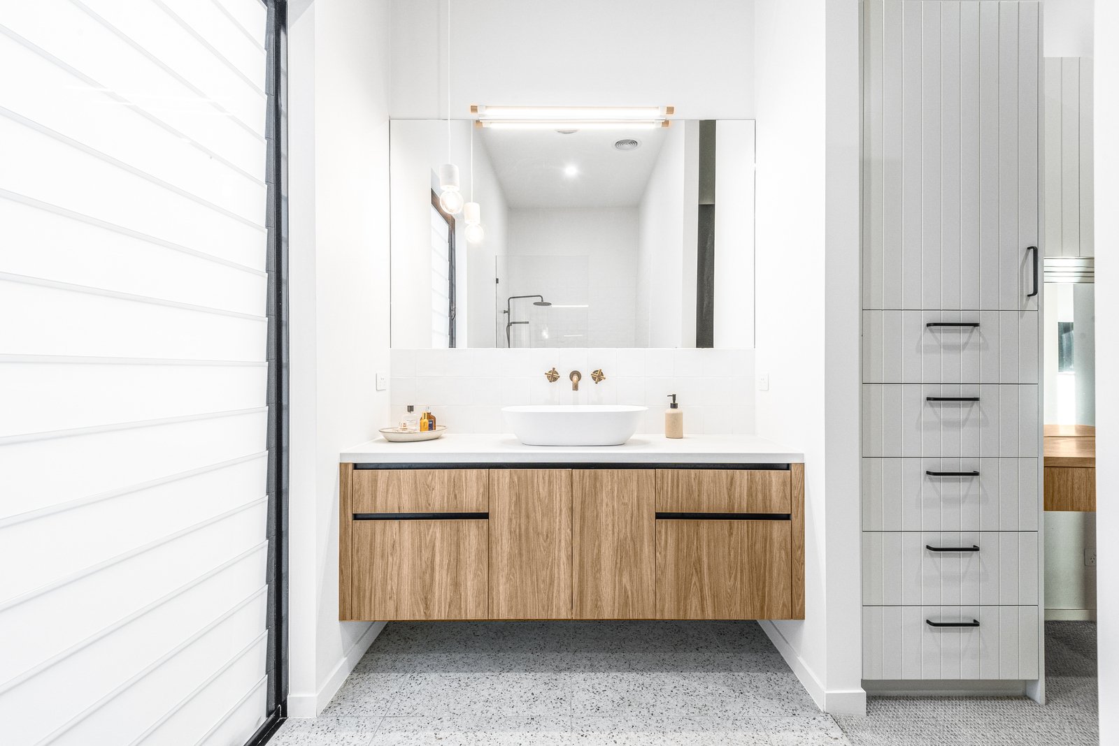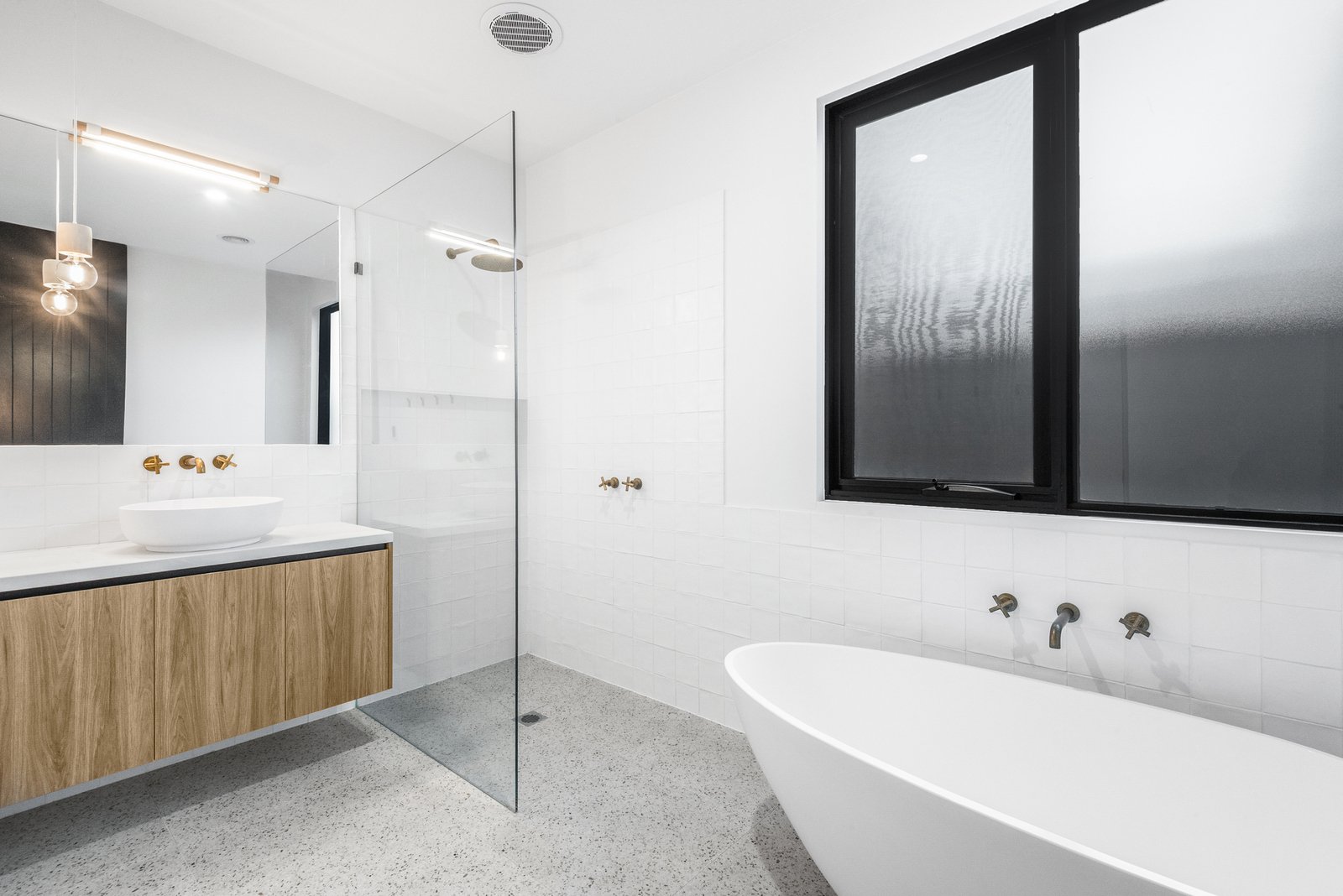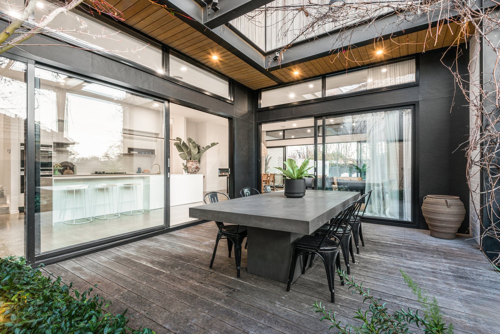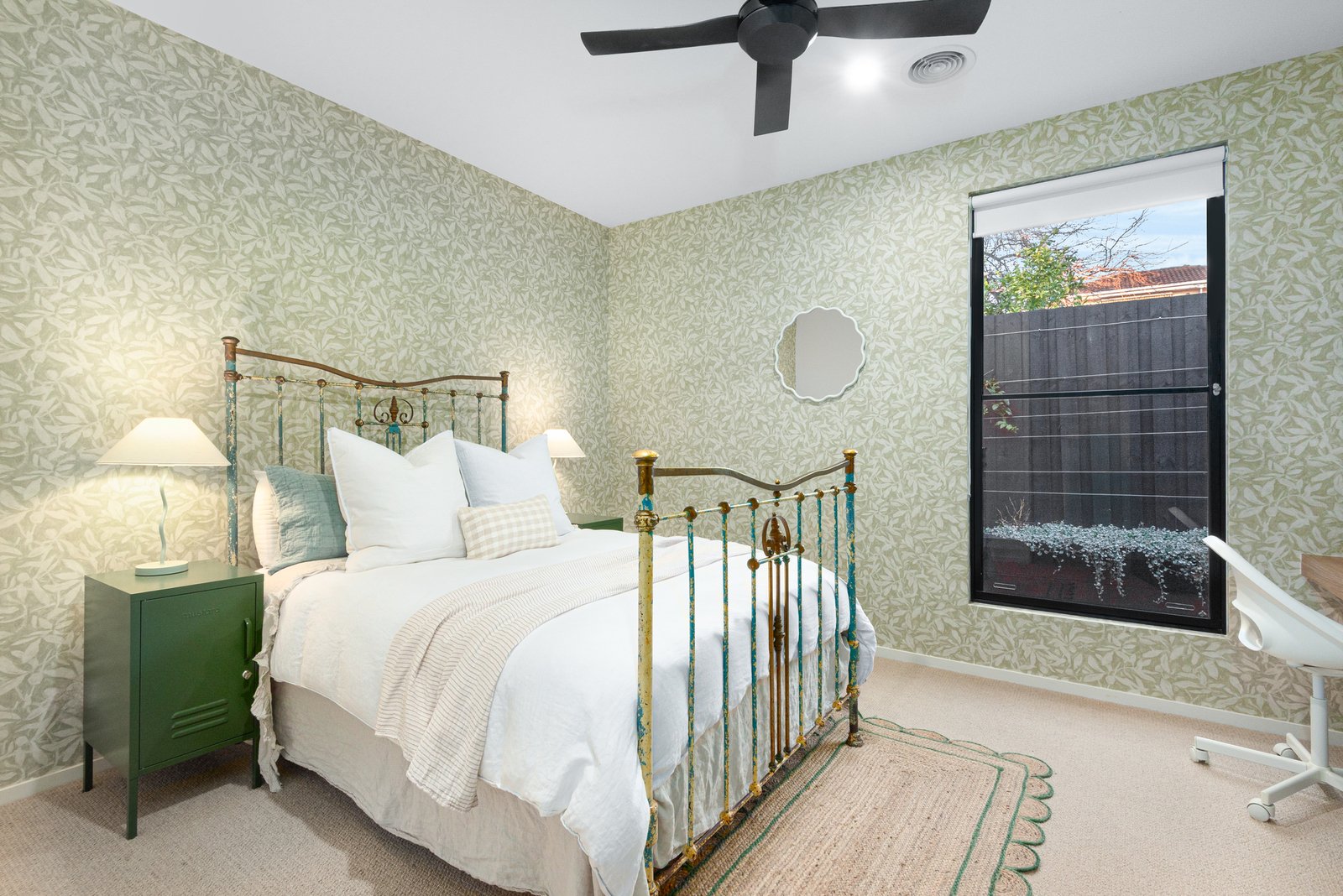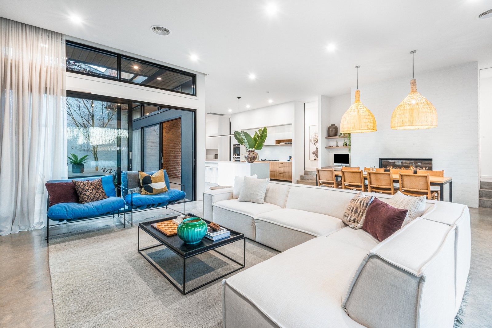 The striking contemporary façade features an alluring blend of reclaimed brick and timber finishes, complemented by lush landscaped gardens. On entry, a central hallway takes your eye through the length of the home showcasing 3.4m ceilings, polished concrete floors, an internal brick feature wall, and ambient lighting, creating an impressive introduction to the home. Off the entry, the main bedroom is a luxurious retreat with floor to ceiling sheers, wool carpet, custom bookshelves, direct access to a private courtyard, fully fitted walk-in robes with dresser, and an elegant ensuite with heated floors, walk-in frameless shower, vanity with stone benchtop, and beautiful organic brushed brass tapware. Three additional bedrooms are zoned in a separate wing, all feature built-in robes and desks, serviced by a stylish main bathroom with freestanding bath, heated floors, and a separate powder room.
