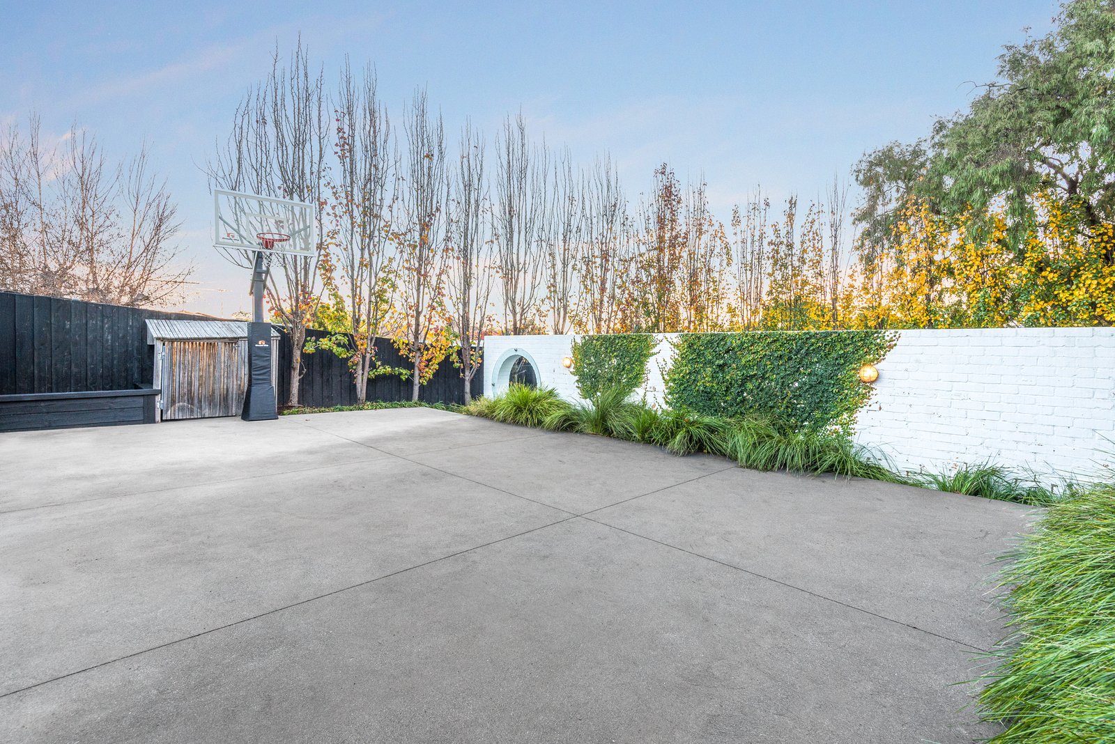 Heading outside, the luxury continues. The expansive outdoor living area allows space for dining and lounging zones, with a fully equipped outdoor kitchen featuring concrete benchtops, built-in BBQ, drinks fridge, sink and generous storage. The stunning inground pool is solar heated, with in-floor self-cleaning, and remote controlled feature lighting, offering a resort-style setting the whole family will love. The synthetic turf area provides a secure space for the kids to play, bordered by mature ornamental pear trees for a tranquil atmosphere. The kids will be impressed by the basketball area, equipped with a Goalrilla adjustable basketball ring for hours of fun. Surrounding gardens include apple, orange, lemon, lime trees, and passion fruit vines, all maintained by an automated watering system. The oversized garage includes a ‘Garage Smart’ storage system, with additional space for a gym or workshop.