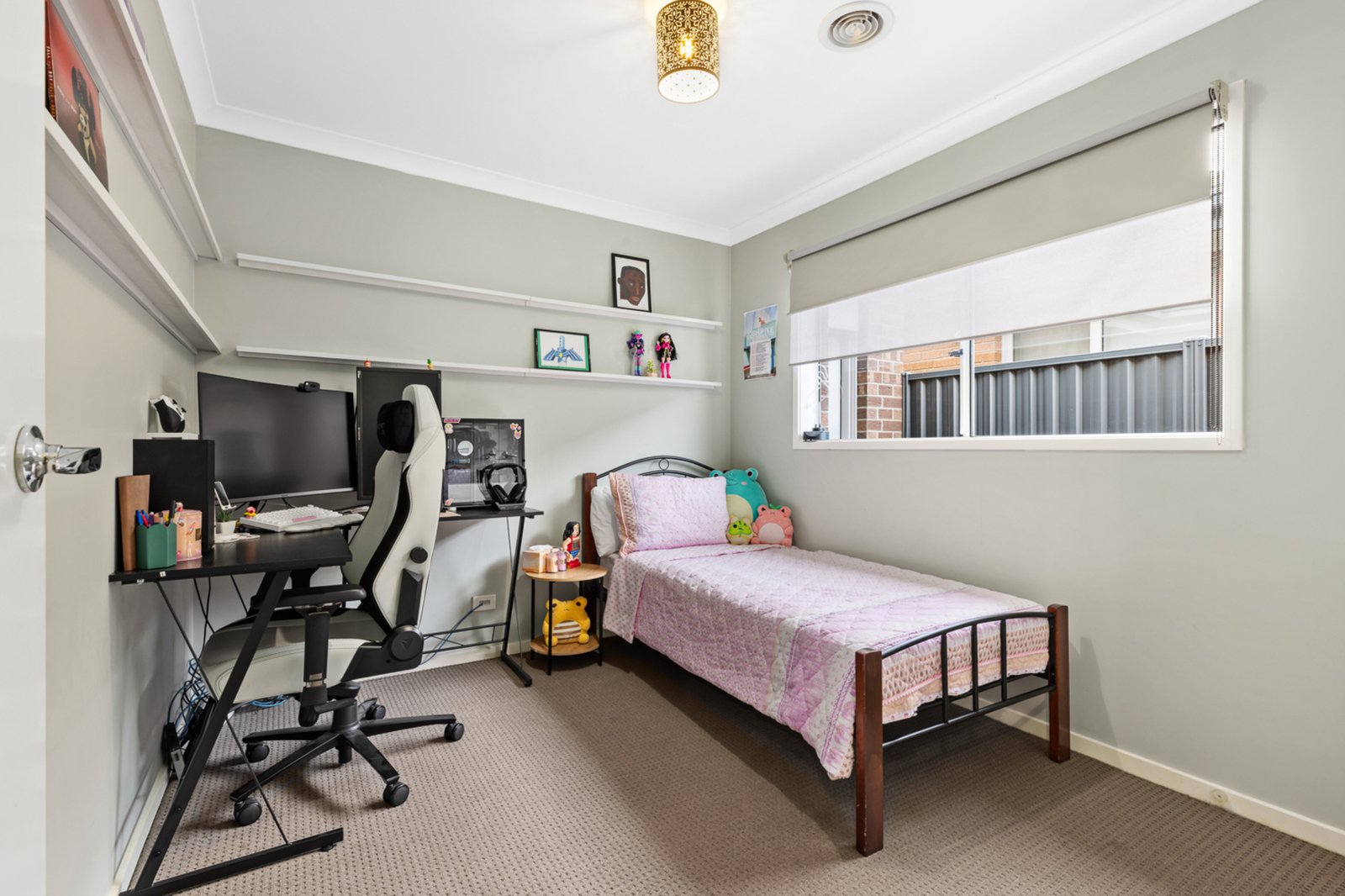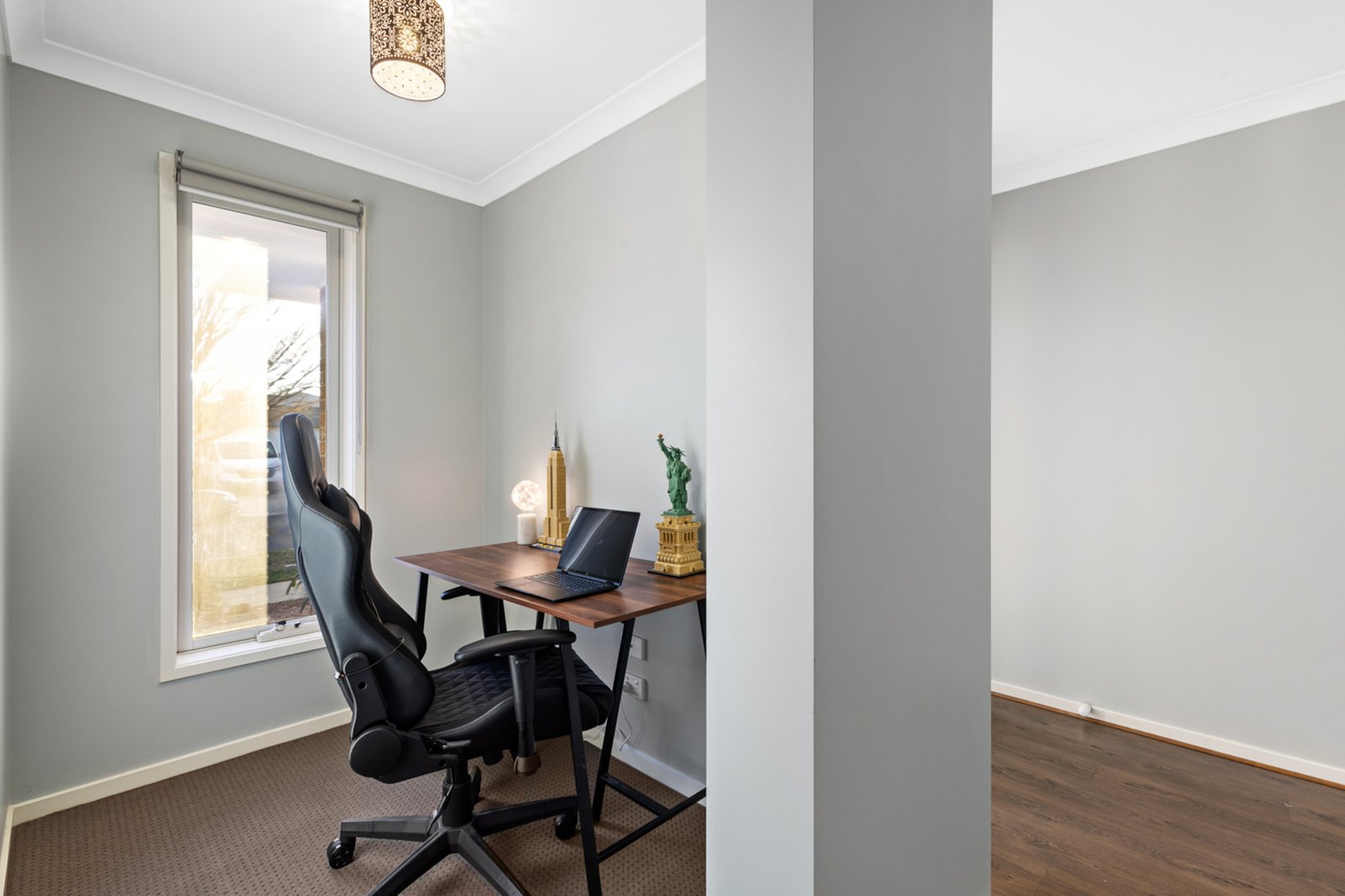 Step inside and discover a home packed with quality features. The master suite is a private retreat, complete with his and hers walk-in robes and a sleek ensuite featuring an oversized shower. Three additional bedrooms include built-in robes, ensuring space and storage for everyone. The stylish kitchen boasts stone benchtops, a walk-in pantry, gas cooktop, electric oven, and dishwasher, all flowing seamlessly into the open-plan living and dining area enhanced by a ceiling fan for added comfort. A second formal lounge at the front of the home, a dedicated study nook, and a family bathroom with separate toilet offer extra flexibility for growing families. Additional highlights include ducted central heating, a well-appointed laundry with storage, a double lock-up garage, and an undercover alfresco area perfect for year-round entertaining. Outside, enjoy the low-maintenance yard featuring a fire pit area and handy garden shed.