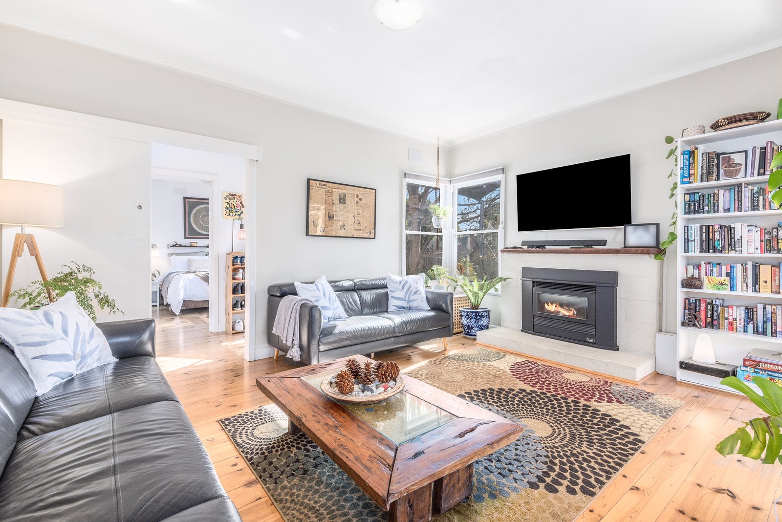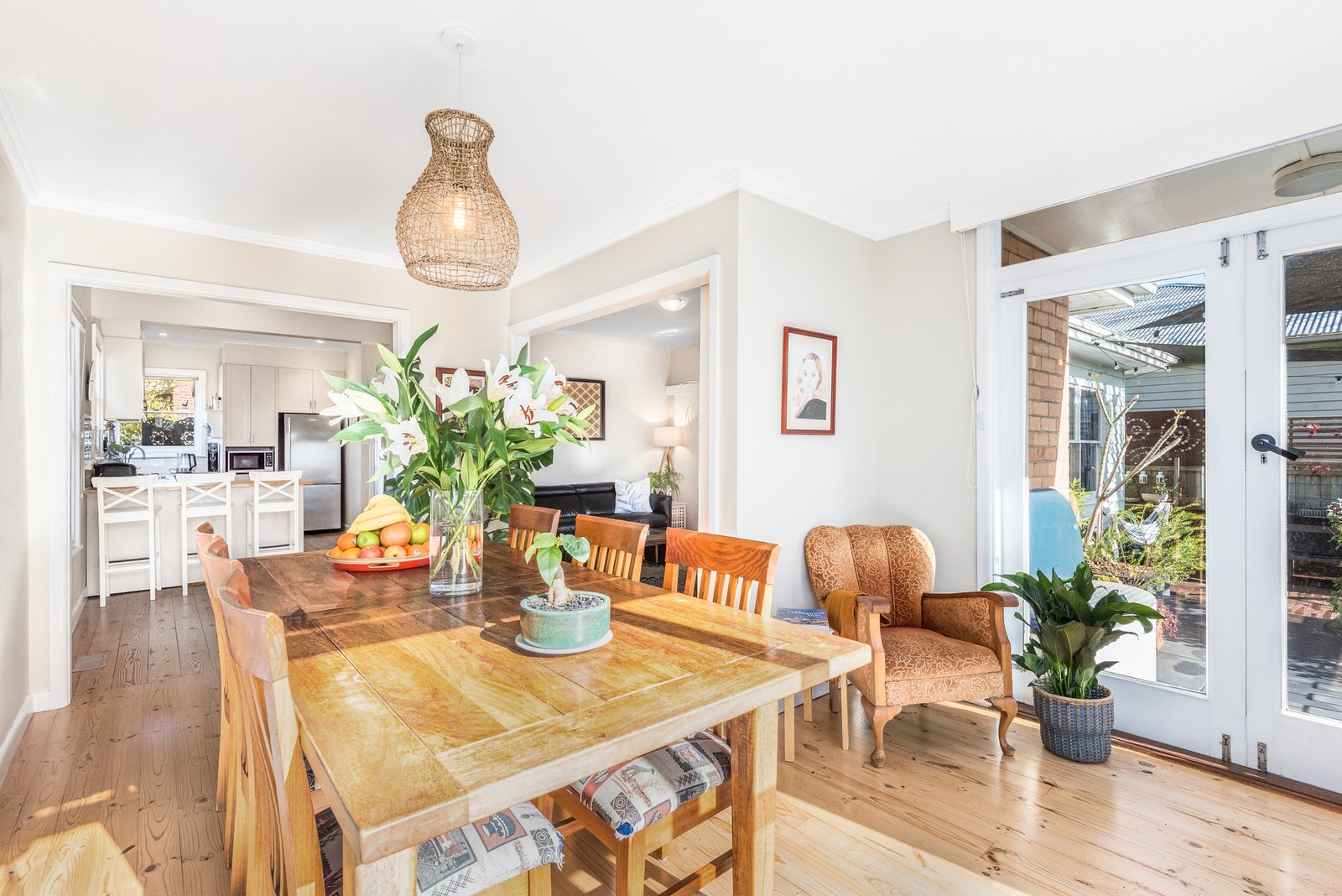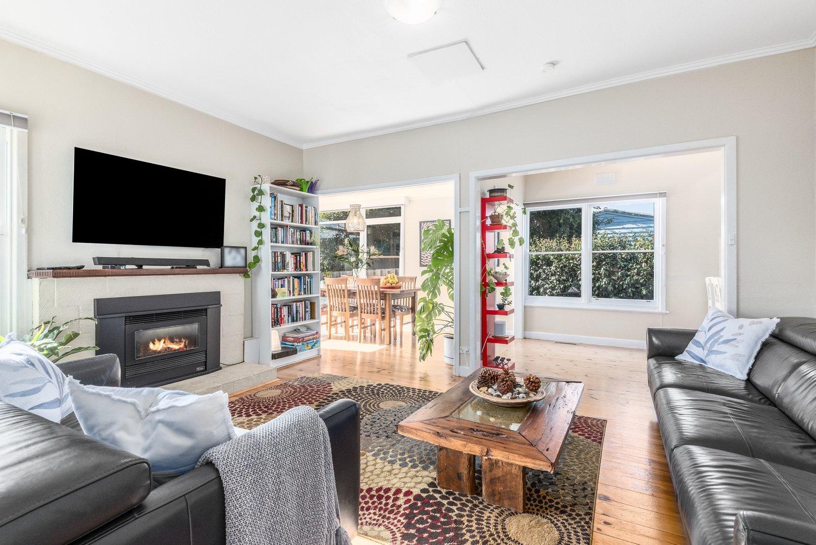 Set behind a high fence, the charming mid-century home sits in a lush garden setting, with a north facing deck offering a private area to enjoy the sun or entertain. Inside, light interiors and polished timber floors create a warm and inviting atmosphere throughout. A wide entry leads into the welcoming lounge, featuring an original mantel with gas log fire, creating a cosy ambience. The adjoining dining area is bathed in natural light, with large windows offering a tranquil garden outlook. The open plan layout flows through to the updated kitchen, featuring timber benchtops, quality appliances including Westinghouse 600mm oven, 900mm gas cooktop, Asko dishwasher, and generous storage provisions. A second living area in the bedroom wing offers a quiet space to retreat.