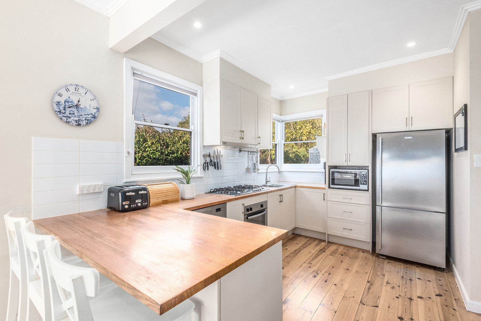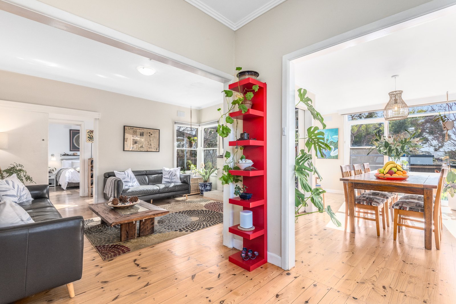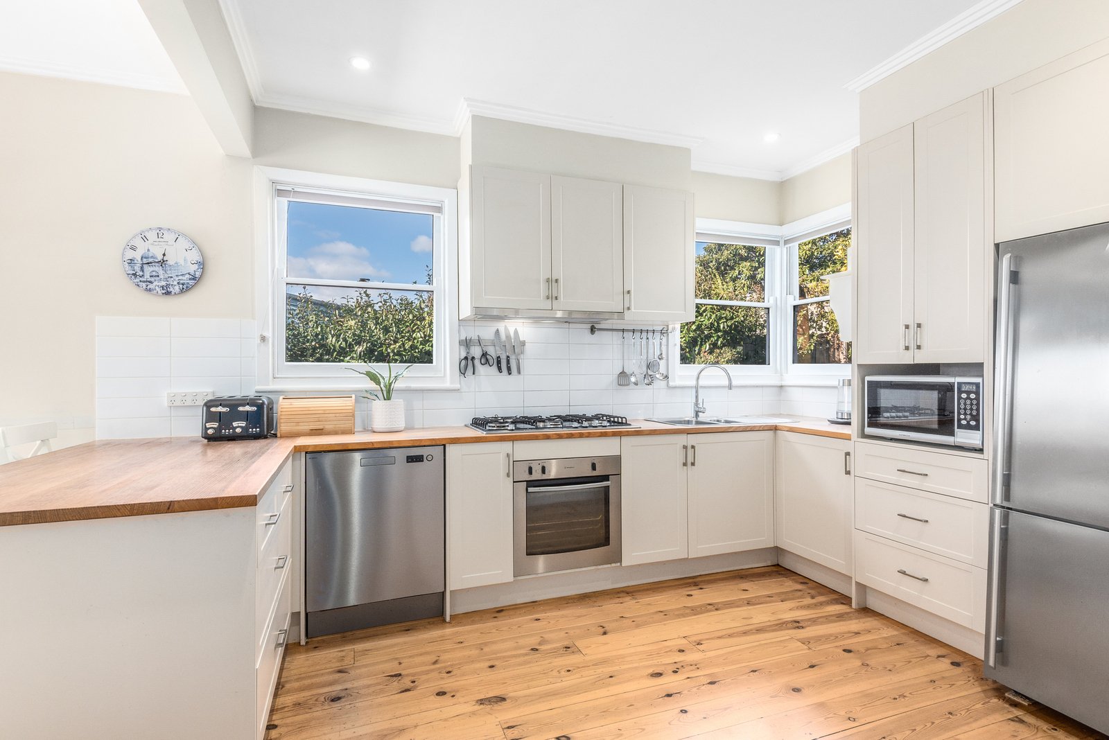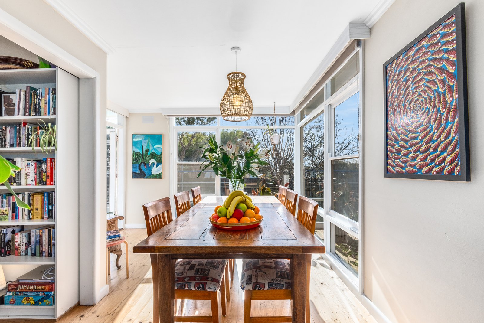 Set behind a high fence, the charming mid-century home sits in a lush garden setting, with a north facing deck offering a private area to enjoy the sun or entertain. Inside, light interiors and polished timber floors create a warm and inviting atmosphere throughout. A wide entry leads into the welcoming lounge, featuring an original mantel with gas log fire, creating a cosy ambience. The adjoining dining area is bathed in natural light, with large windows offering a tranquil garden outlook. The open plan layout flows through to the updated kitchen, featuring timber benchtops, quality appliances including Westinghouse 600mm oven, 900mm gas cooktop, Asko dishwasher, and generous storage provisions. A second living area in the bedroom wing offers a quiet space to retreat.