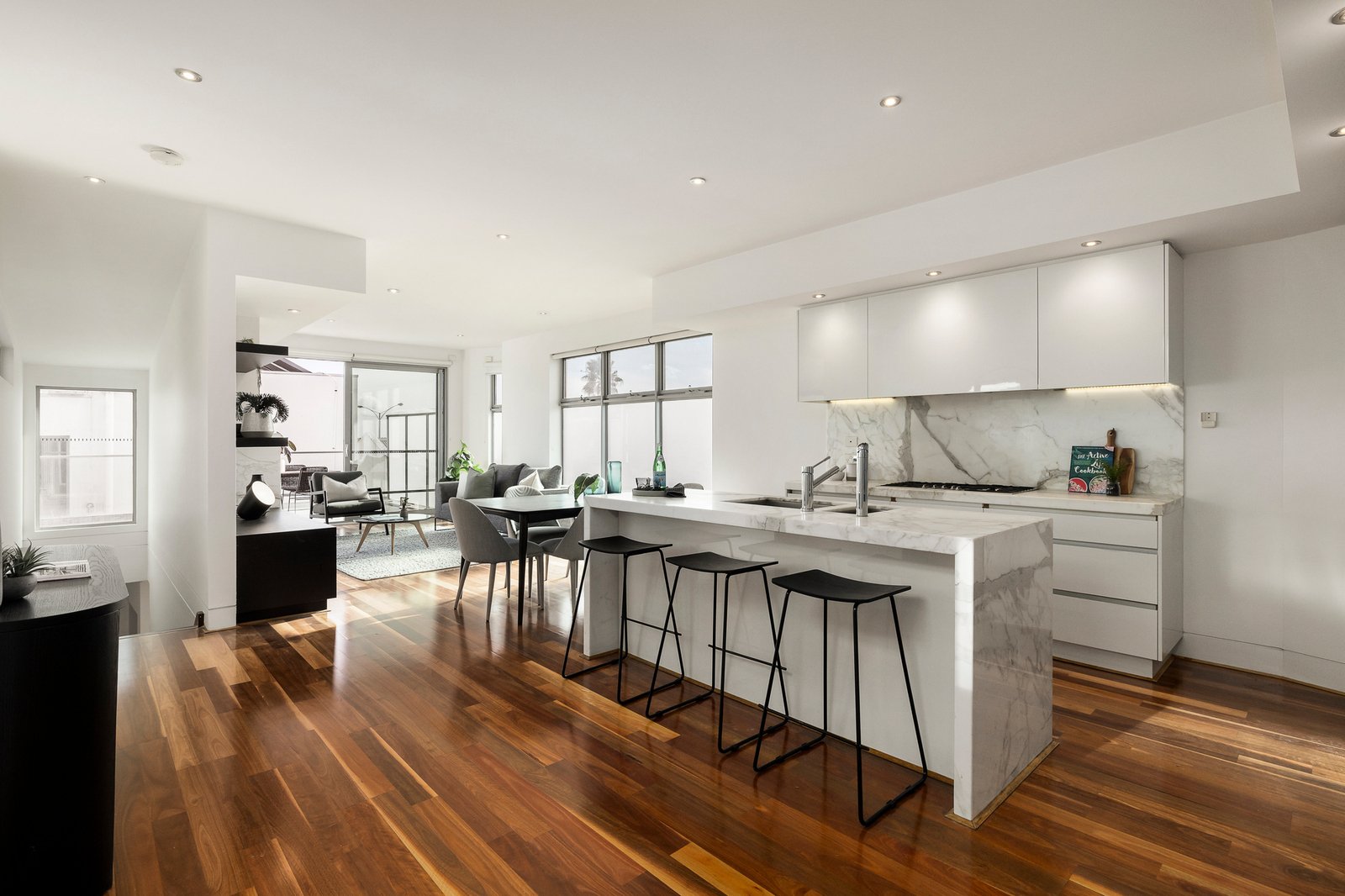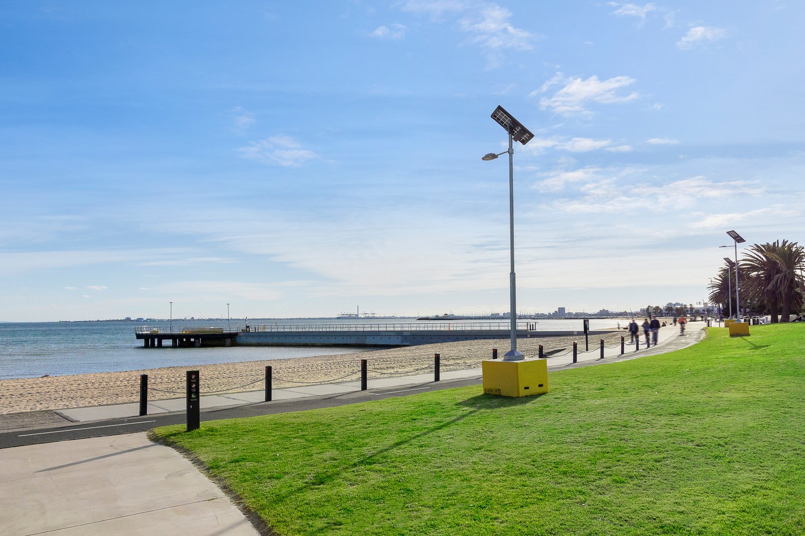 Experience boutique contemporary living in an iconic beachfront address in this architecturally designed townhouse directly opposite famous St Kilda Beach. One of just four in a secure group, super smart spaces expand out over three light filled levels providing a lock up and leave home of quality, privacy and absolute convenience just a short stroll from every St Kilda attraction