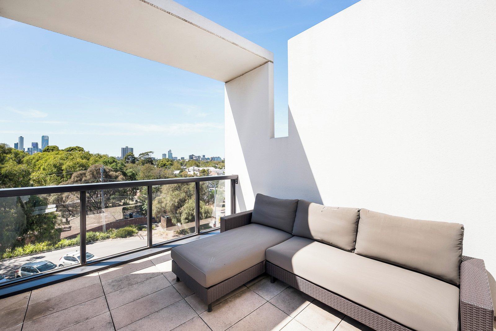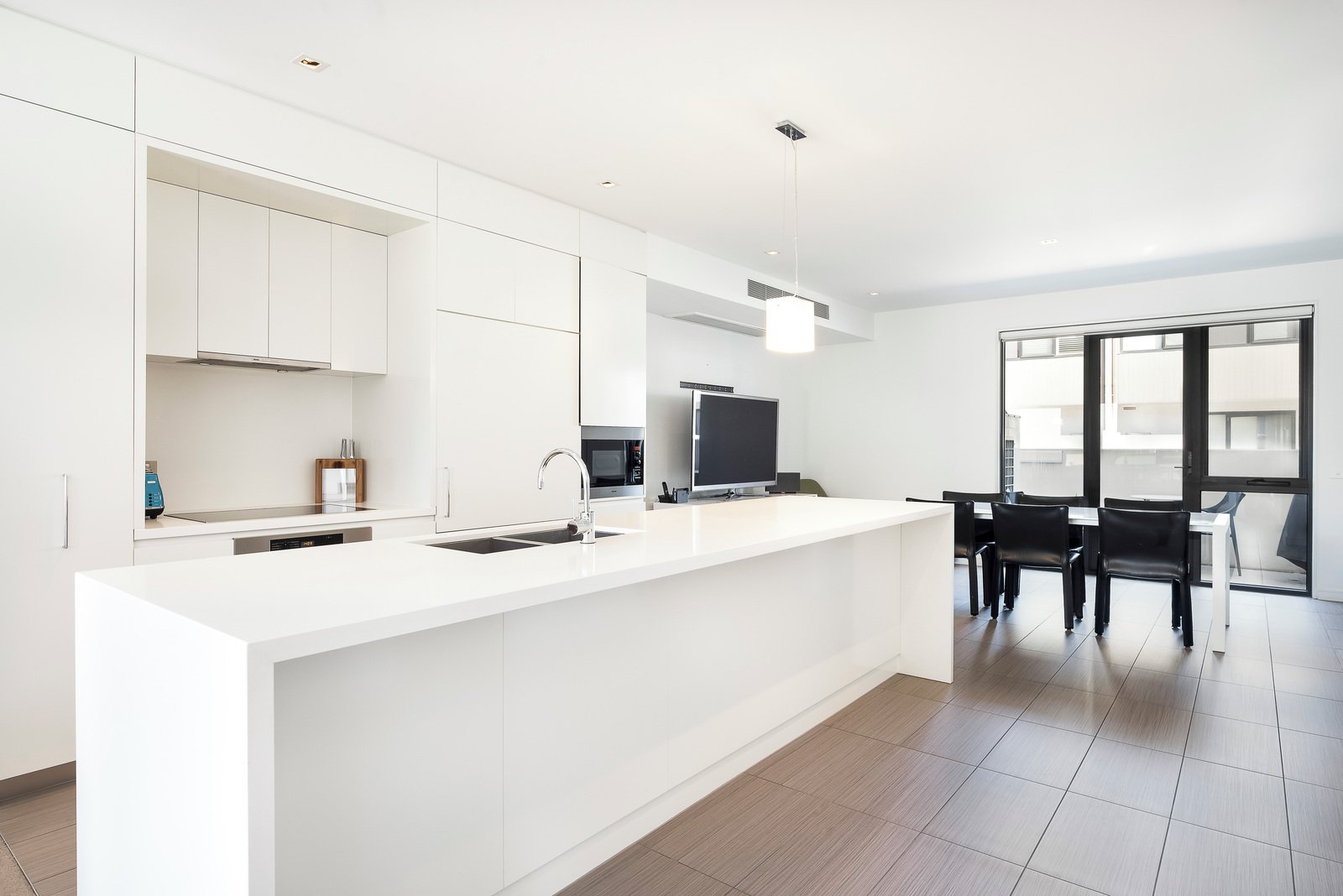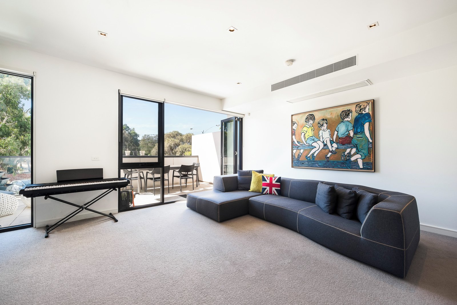 The 1st floor is the heart of the property with spacious open plan living and dining areas opening to terrace balcony with tranquil views over the Gasworks Arts Park, gourmet chefs kitchen complete with Miele appliances, induction cook top, stone bench tops, integrated dishwasher and plenty of cupboard space.