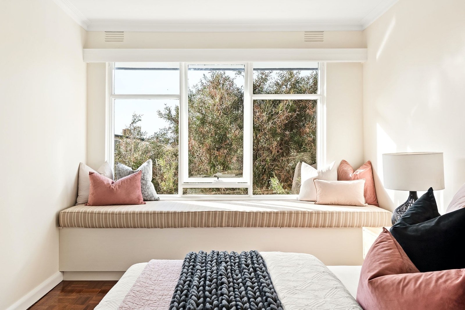 Experience the ultimate inner-city lifestyle in this tightly-held, top-floor, two-bedroom apartment – your private urban sanctuary awaits in vibrant St Kilda East. This beautifully renovated 1960s gem offers a bright and airy open-plan living space that flows seamlessly onto your Parisienne-style balcony via French doors. Take in the lush green outlook in summer and abundant sunshine in winter – with truly unobstructed tree-top views to call your own. Both bedrooms are generously sized with wall-to-wall robes and a luxurious, resort-inspired designer bathroom. Enjoy the convenience of a dedicated carport on title and the peace of mind of secure, top-floor living.
