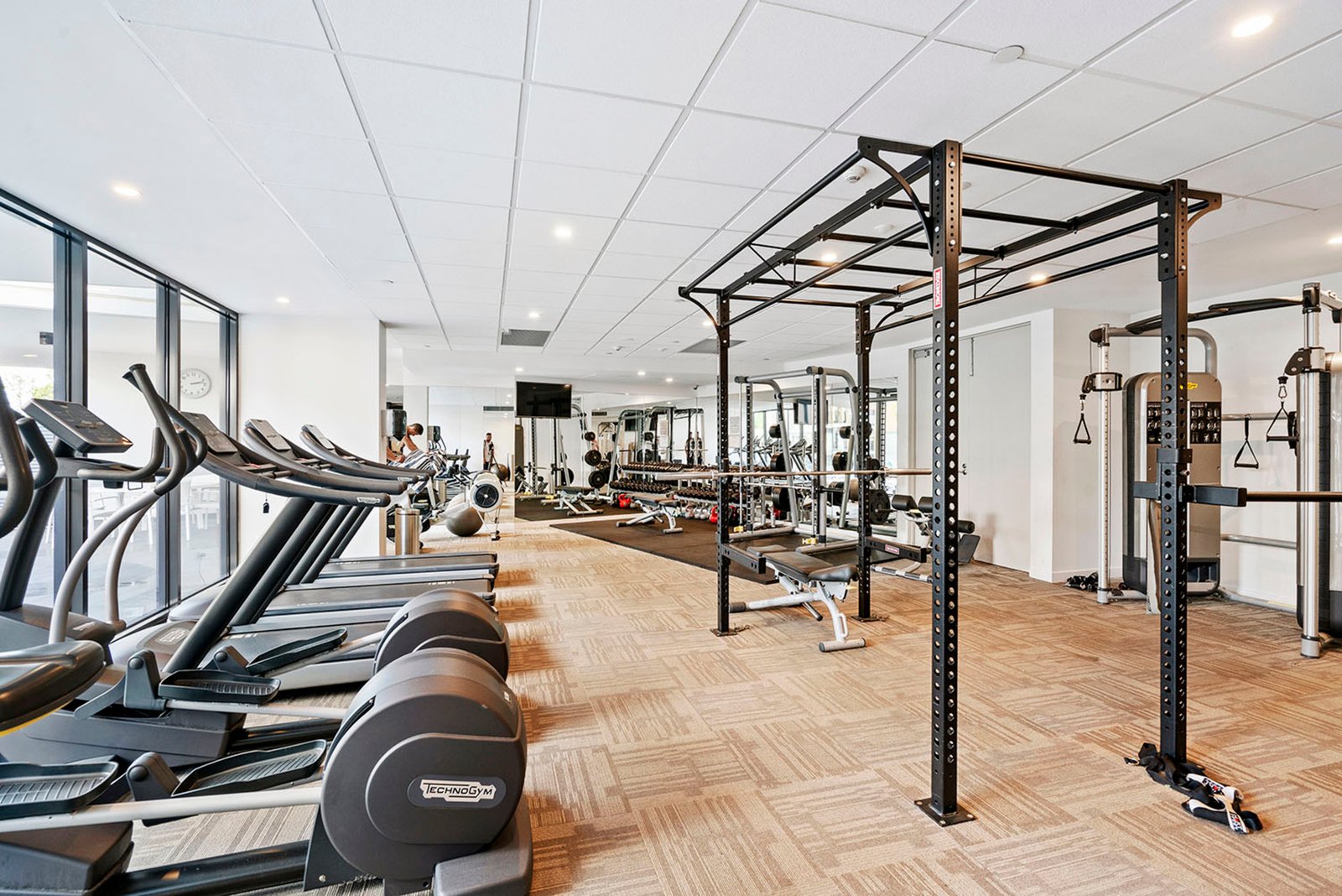 Residents enjoy exclusive access to a heated saltwater infinity pool and spa, sauna, fully equipped gymnasium, and sundeck, while an on-site cafe, licensed IGA, and medical centre add further convenience within the complex.