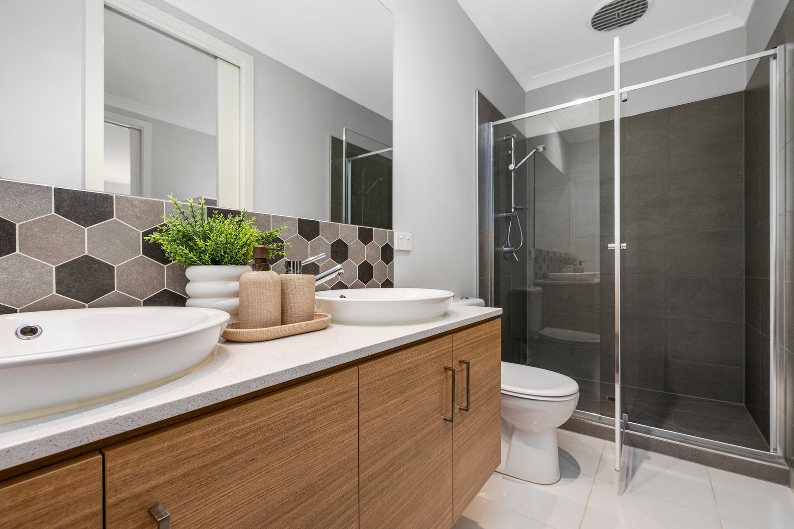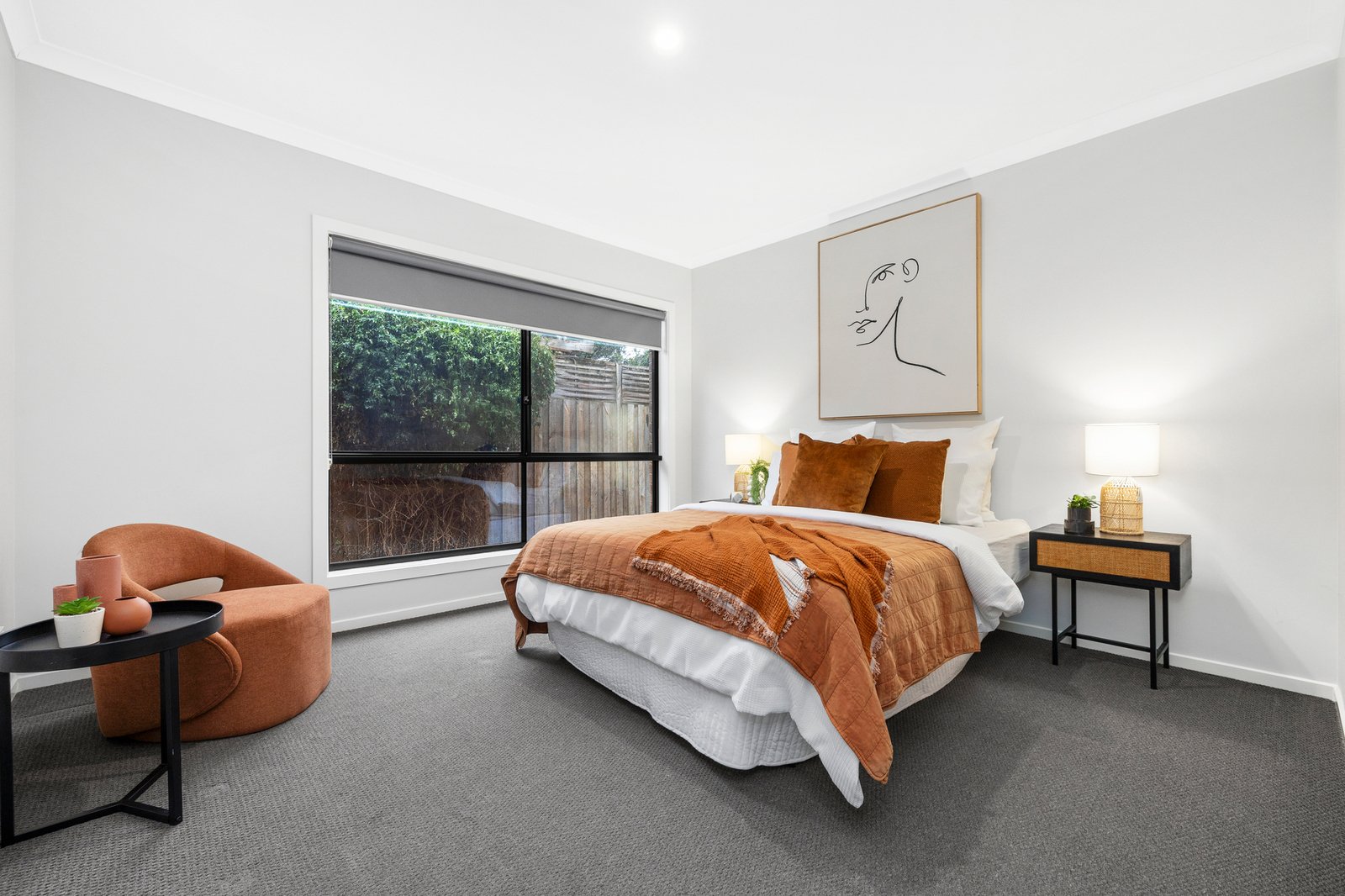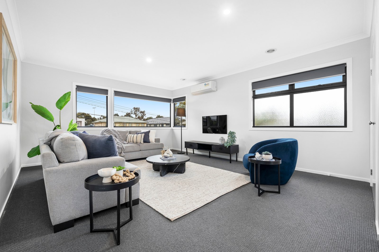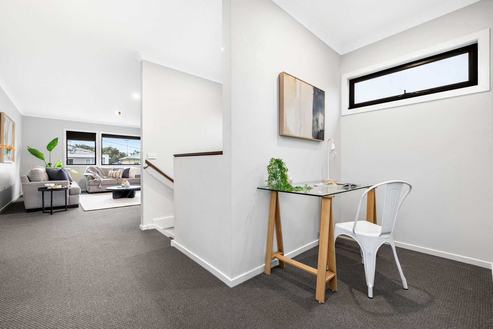 Widening the appeal to downsizers, the main bedroom enjoys an accessible ground-floor position and offers a walk-through robe to its stylish ensuite boasting a twin vanity, while families will be drawn upstairs to make the most of a huge second living area and very practical study nook.