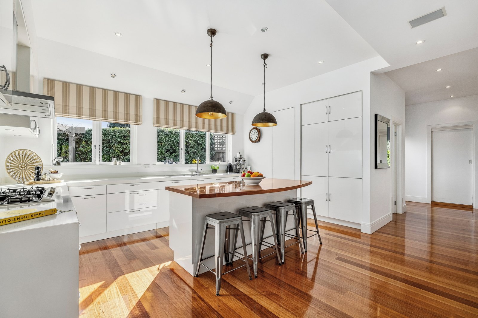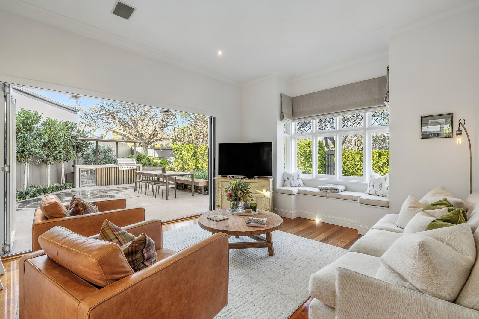 Polished floorboards, high decorative ceilings and diamond leadlight windows complement stylish upgrades that enhance the home’s seamless connection to sunlit outdoor spaces. Entertain in style on the private deck or in the custom al fresco zone, complete with heating panels, a gas fireplace, outdoor kitchen (with built-in BBQ and drinks fridge), and a remote-controlled retractable awning. A separate teen retreat adds exceptional flexibility.