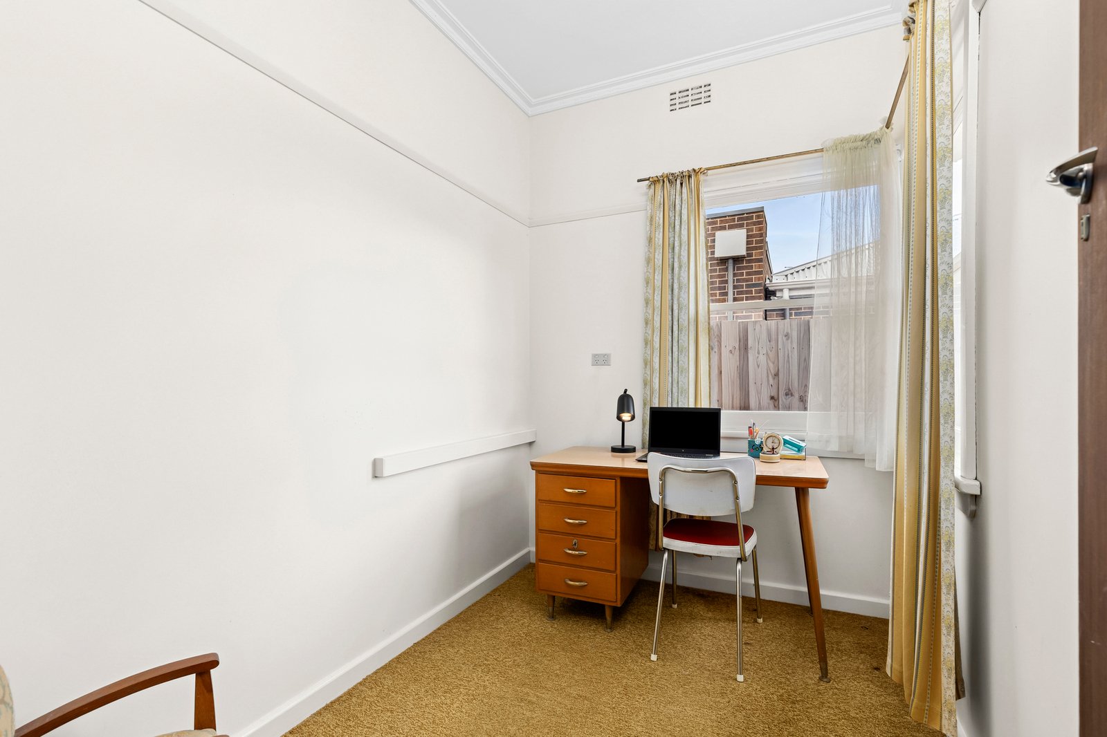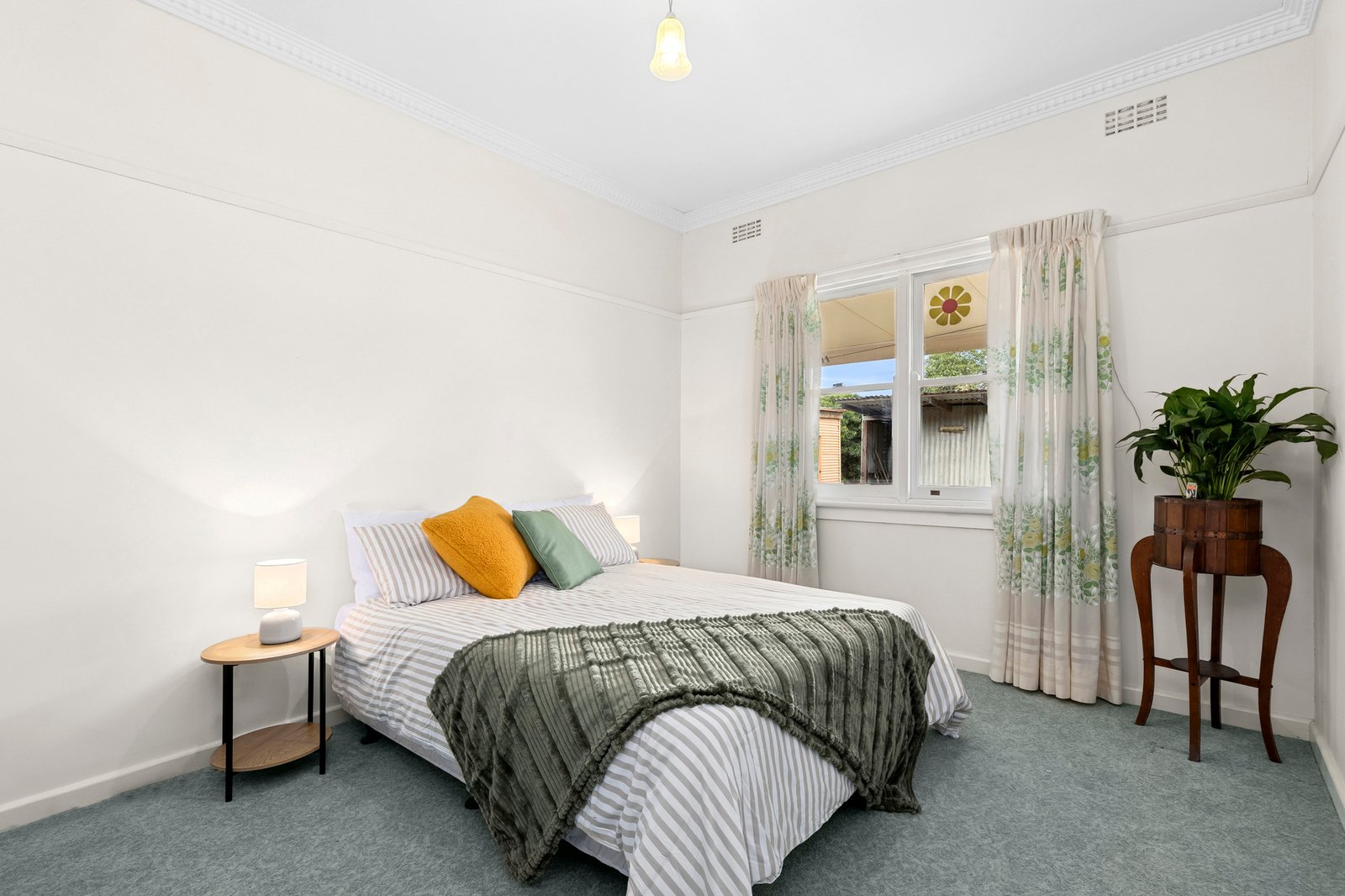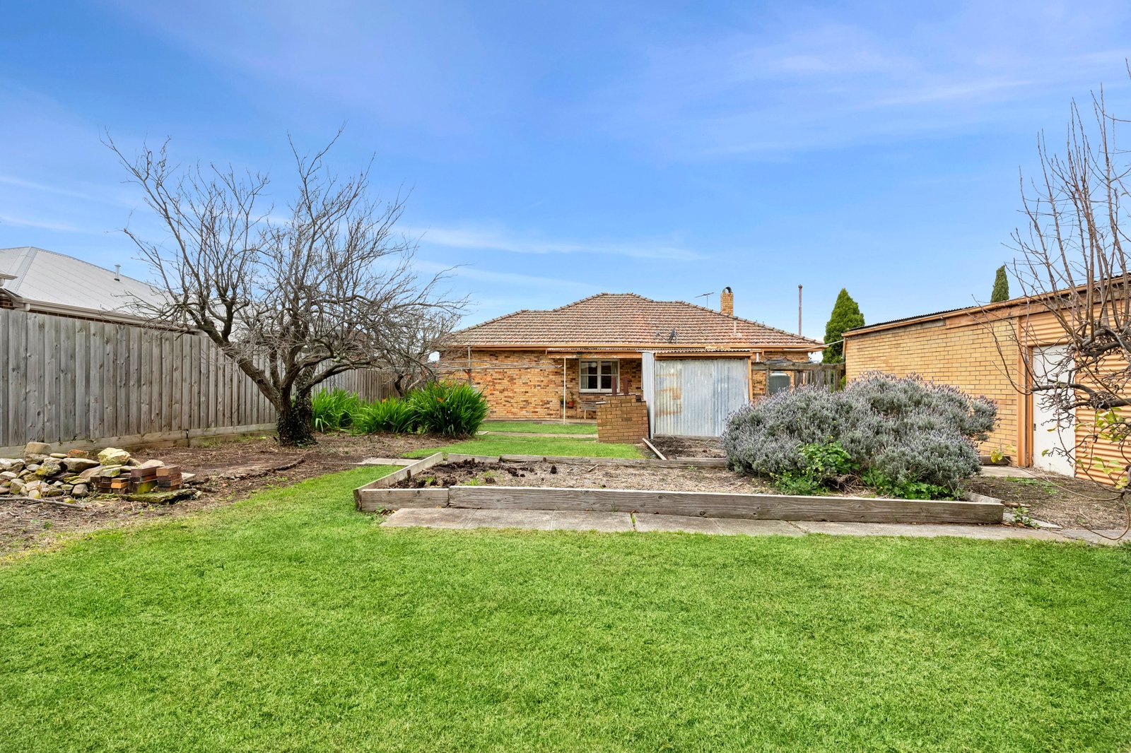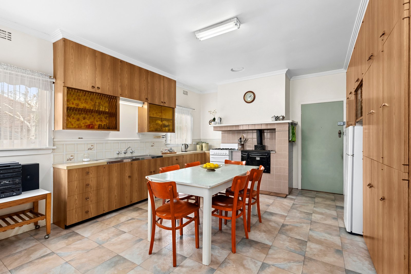 The classic triple-fronted clinker brick façade is charming in appeal. Off the entry, a welcoming living room features a brick mantel, ornate cornice, picture rails and pendant lighting. The adjoining kitchen and meals area includes a classic IXL stove as a nod to the home’s original era, with a 600mm freestanding oven and cooktop for modern convenience. Comprising three generous bedrooms, all include built-in robes, serviced by a bright central bathroom. A home office, laundry, and mudroom at the rear, completes the versatile floorplan.